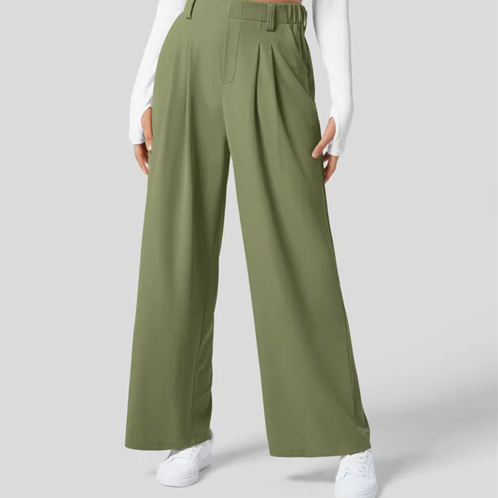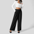 🔥High Waisted Plicated Side Pocket Wide Leg Waffle Casual Pants