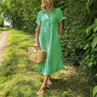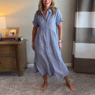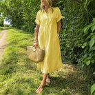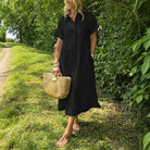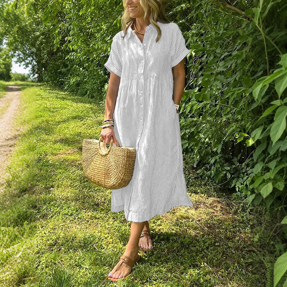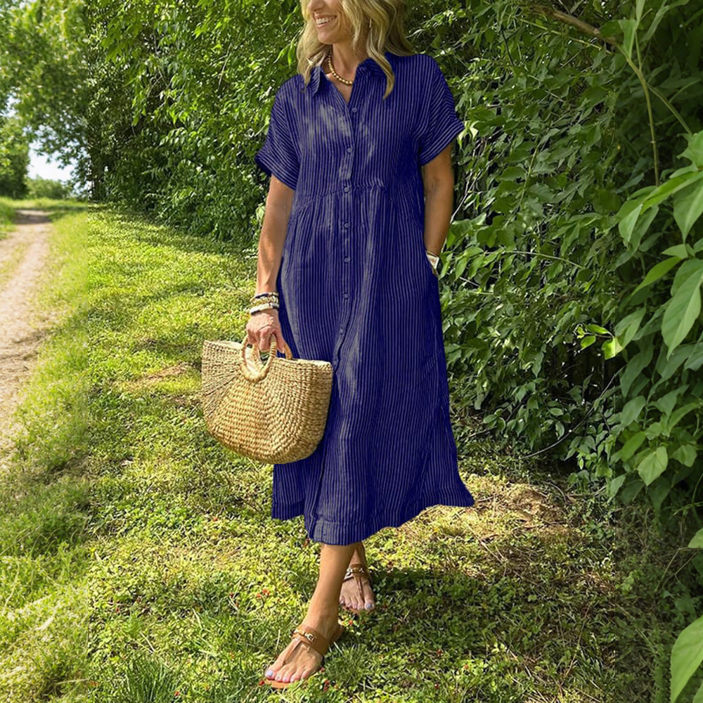 Flattering Fit: Crafted from high-quality fabric, this button-up midi dress offers a flattering fit that helps to hide tummy or belly areas while providing comfort with its loose cover design