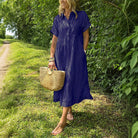 Functional Details: This women's shirtdress includes a front button-up placket and a turn-down notched lapel collar, enhancing the stylish yet practical appeal of the dress for various occasions