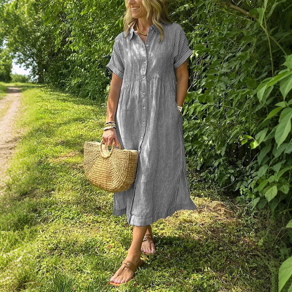 Stylish Design: The striped dress for women features a vintage striped printed pattern, combining elegance and modern flair that is perfect for summer casual outings and beach vacations