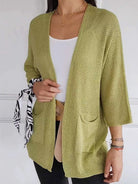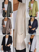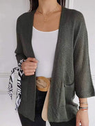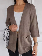 Women's Waffle Long Sleeve Solid Color Casual Knitted Cardigan with Pockets