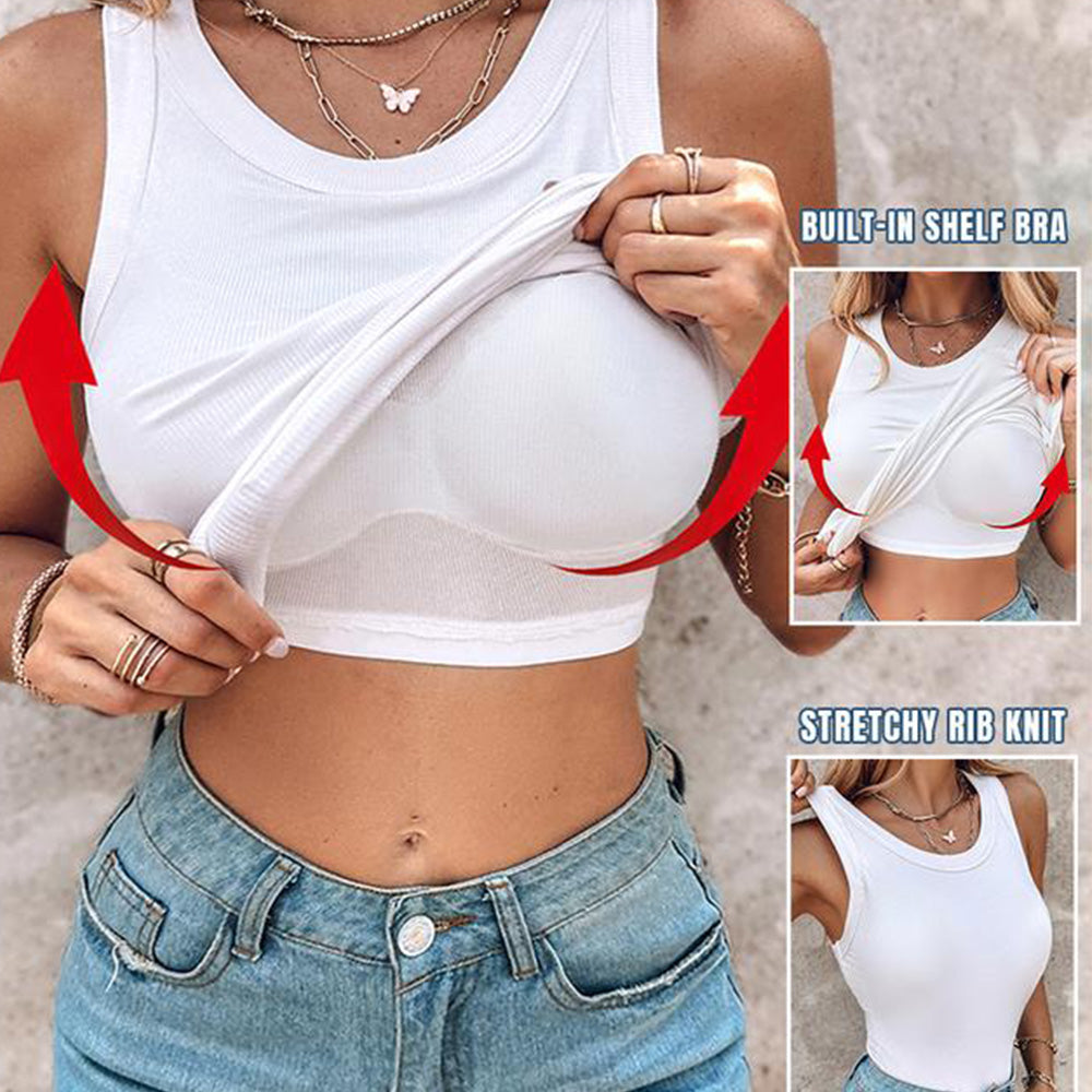 Round Neck Built-in Bra Ribbed Tank Top Fit Casual Comfortableš„