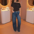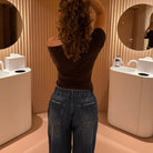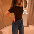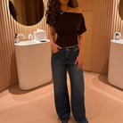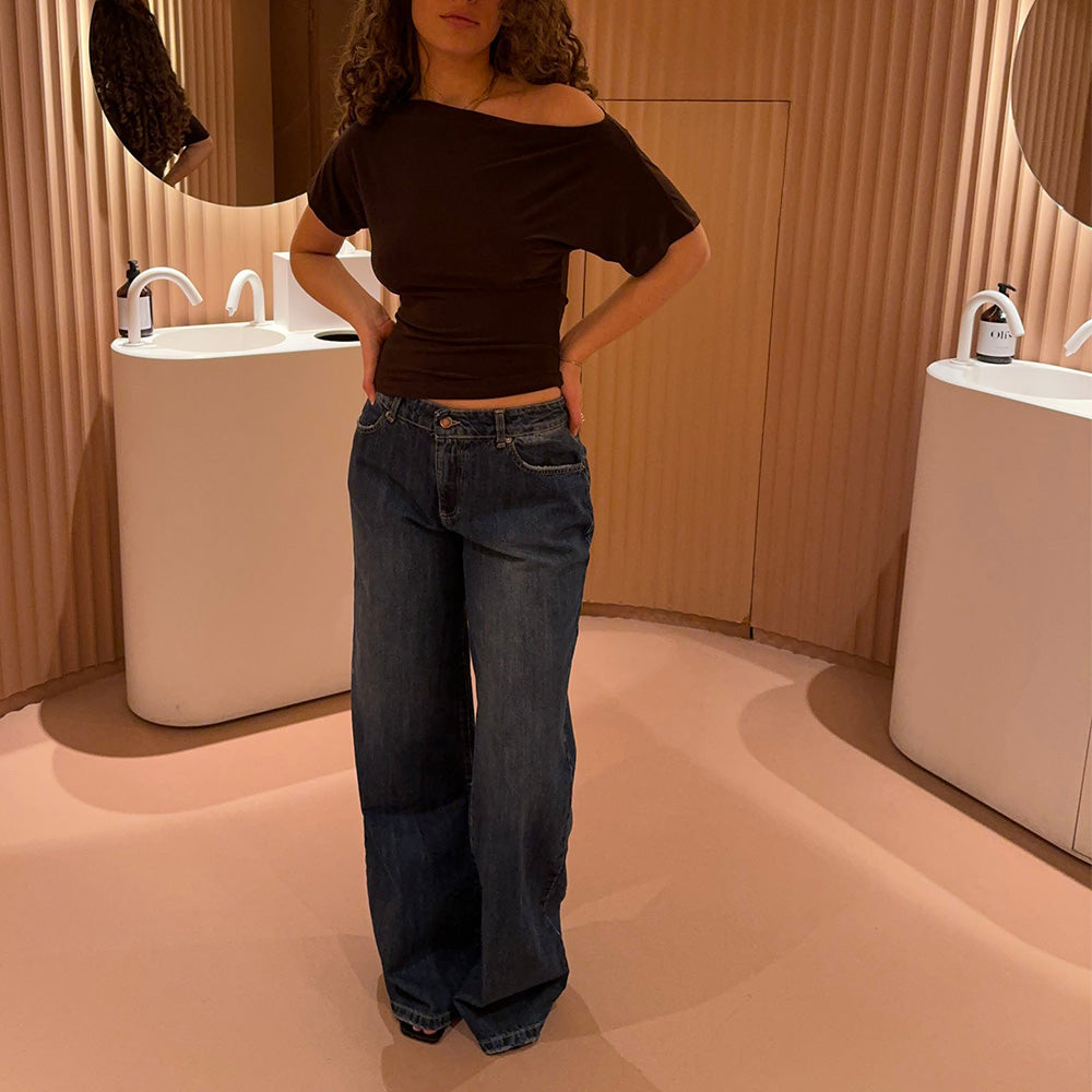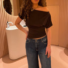 Ourt-shirt is both form-fitting and elegant. The asymmetric, off-the-shoulder neckline accentuates your neck and collarbone, while the fitted cut flatters your silhouette. Makes it perfect for those seeking a classic look with an exclusive touch.