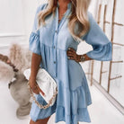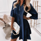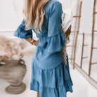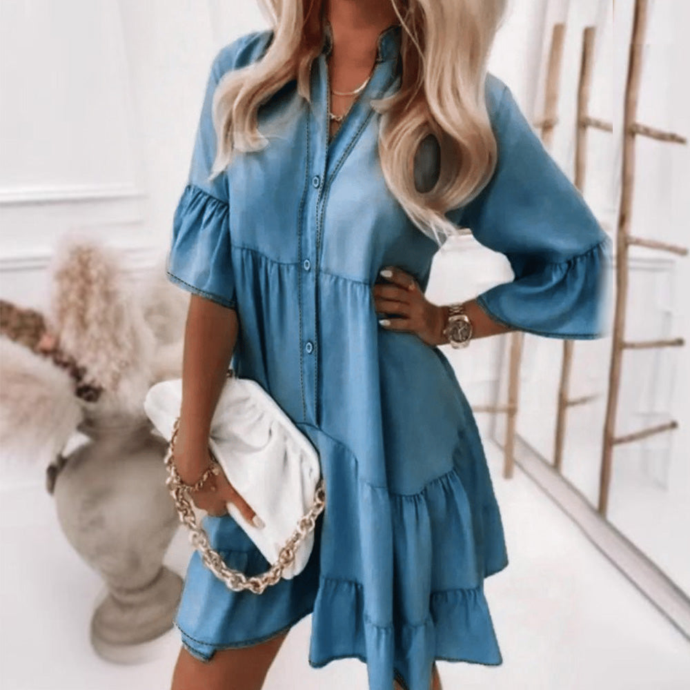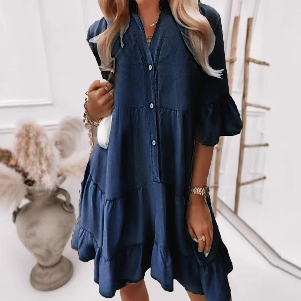 V-Neck Ruffle Trim Summer Dress – Lightweight Denim Look