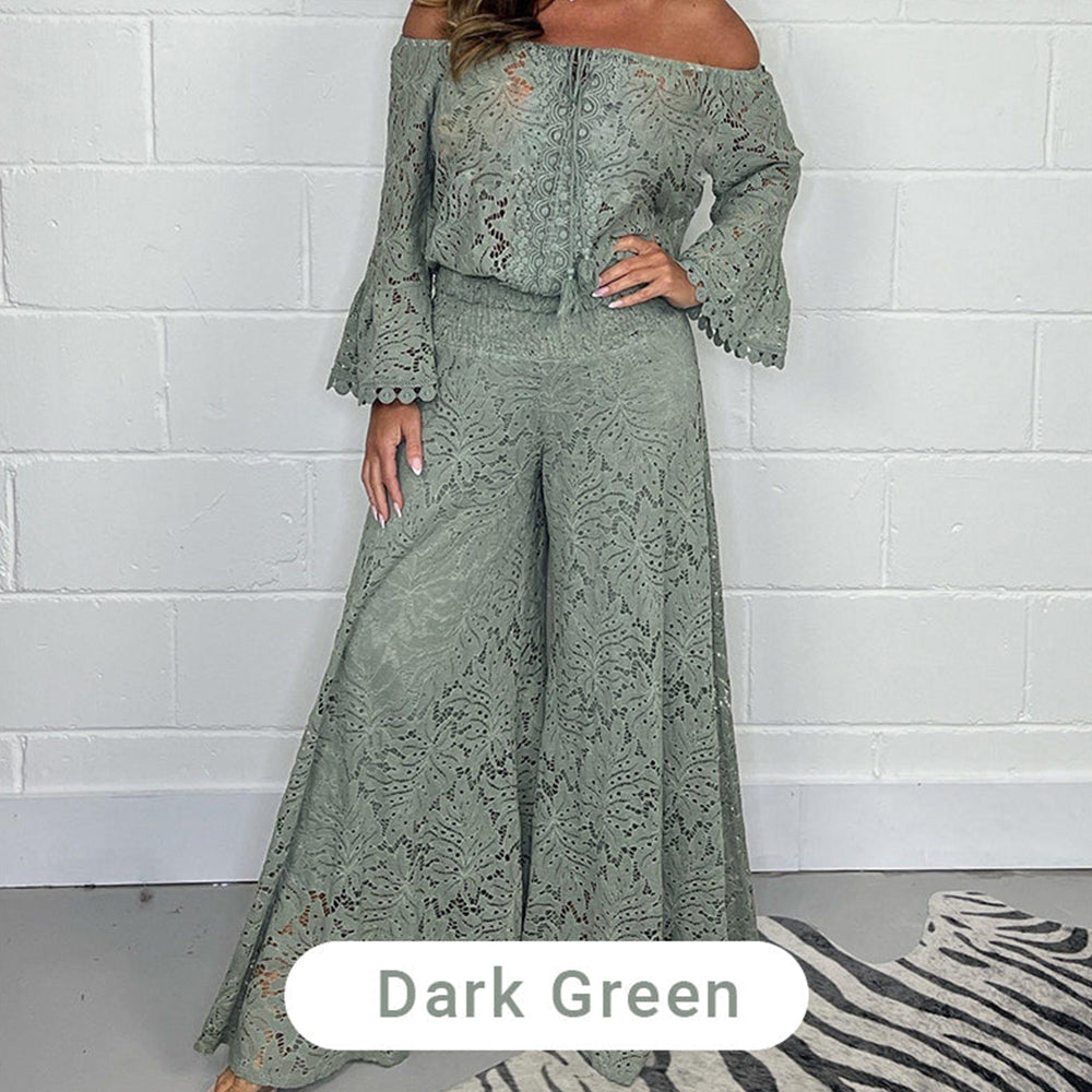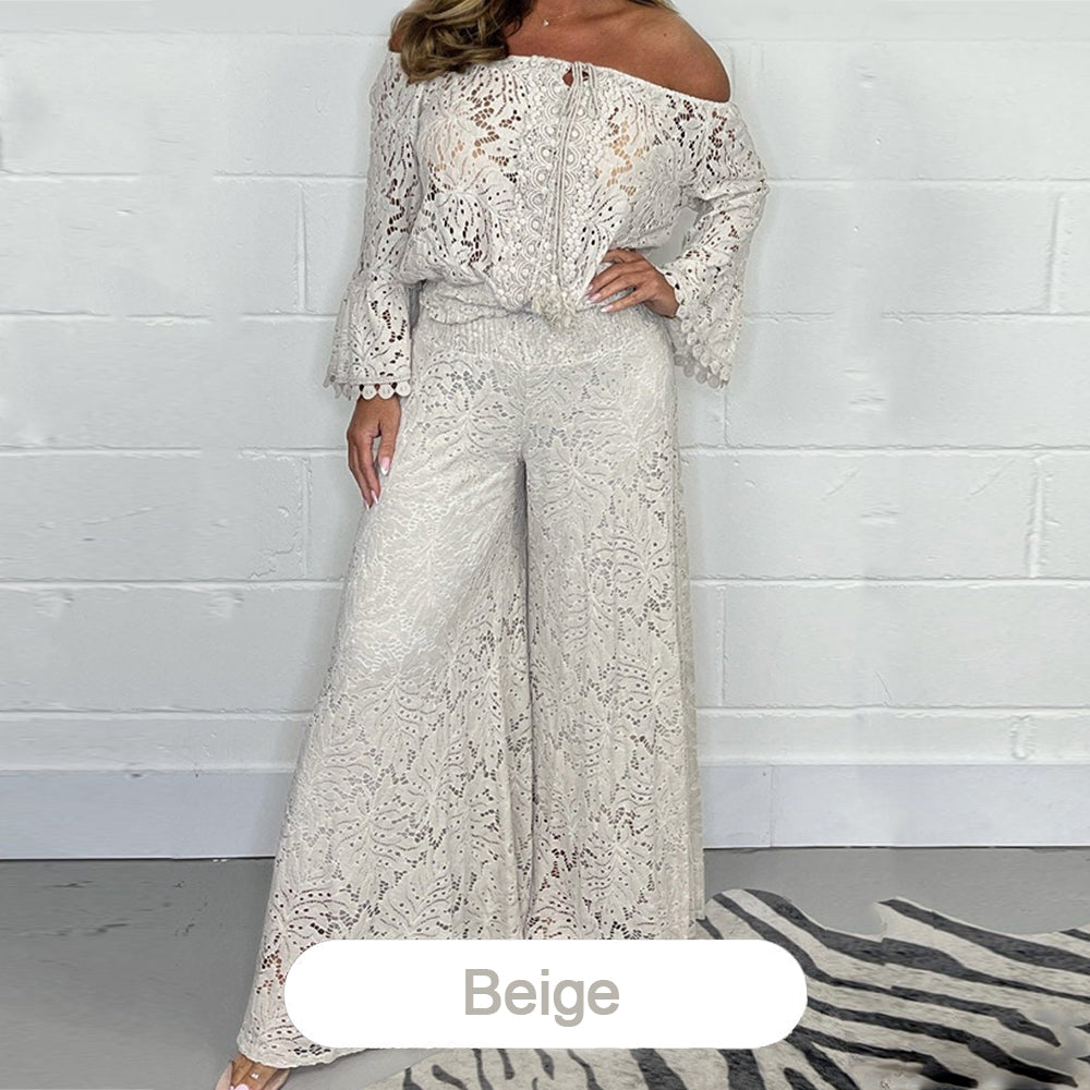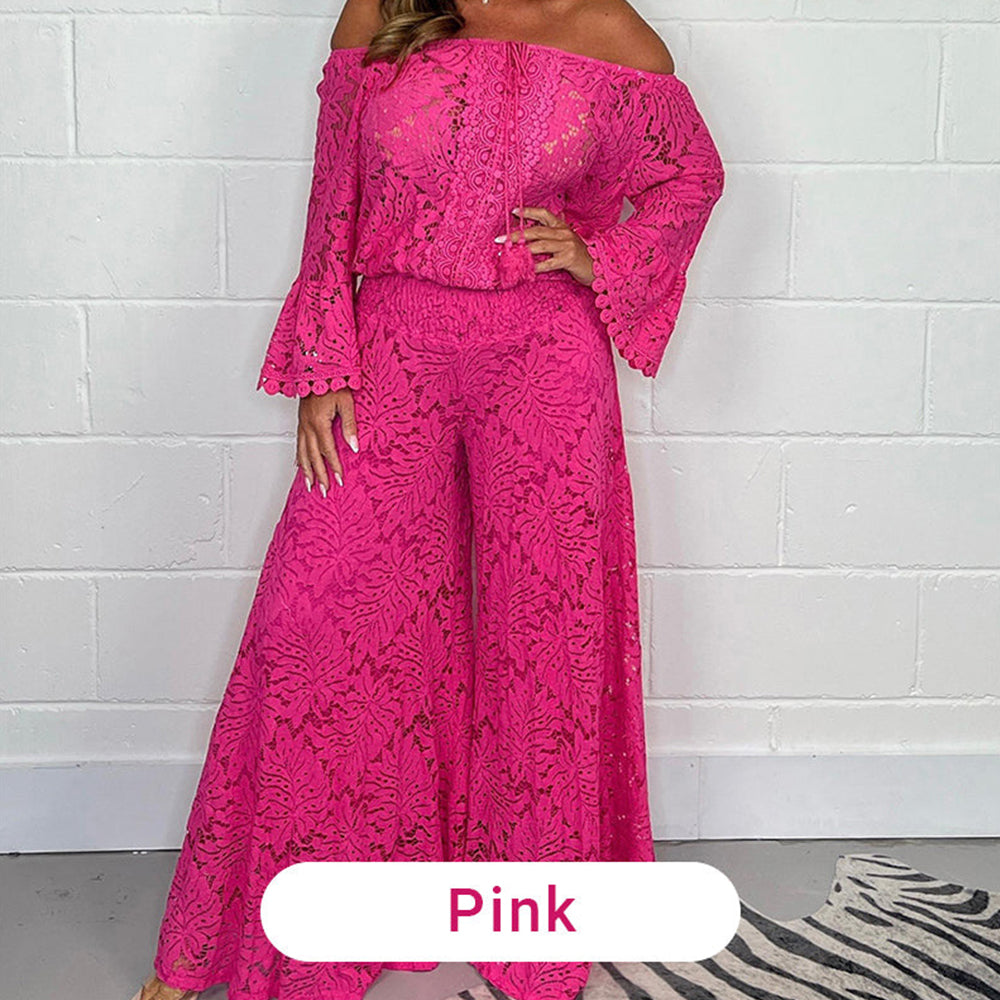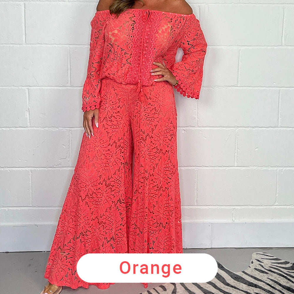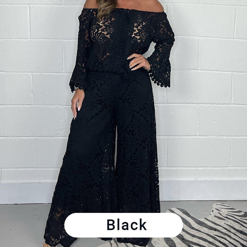 🌸Women's Lace Crochet Sexy Top and Wide-Leg Pants Jumpsuit