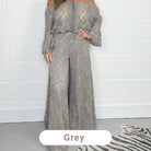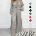 ✨The alluring shoulder straps on the top create an attractive and feminine silhouette, beautifully framing the shoulders. The wide-leg pants with a high waist create a relaxed and flowing look that complements the fitted top effortlessly.