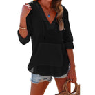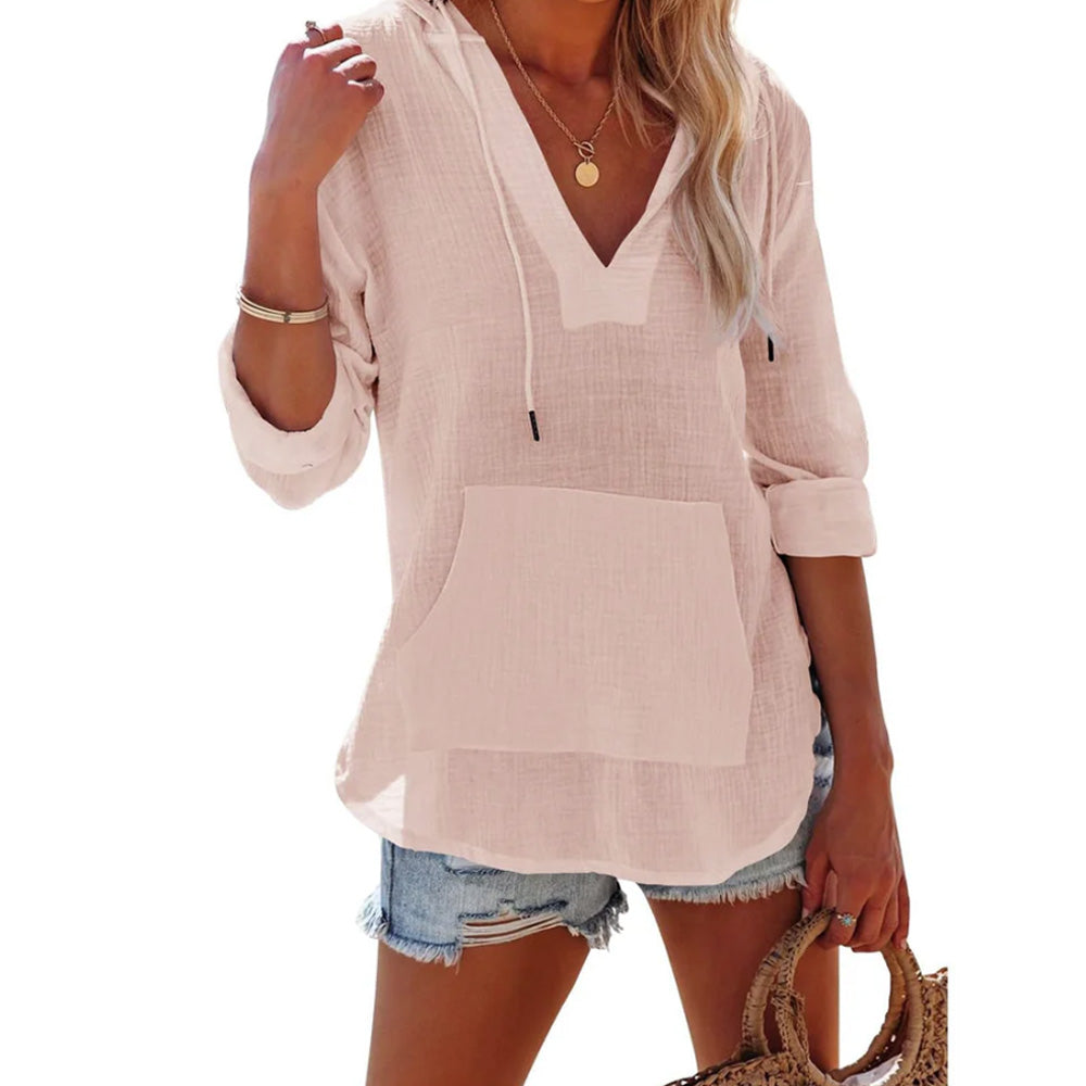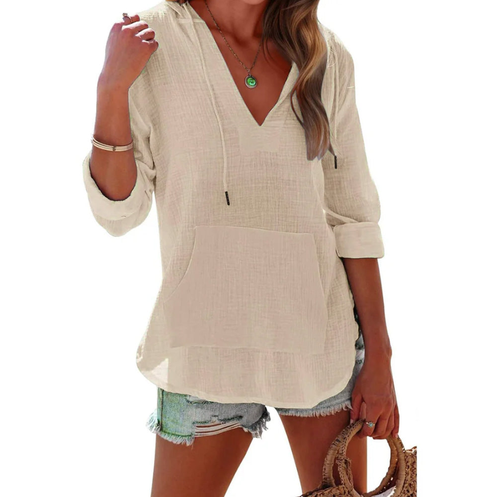 🏖️Women's Oversized Hooded Beach Cover Up - Long Sleeve V-Neck Pocket Shirt