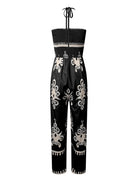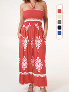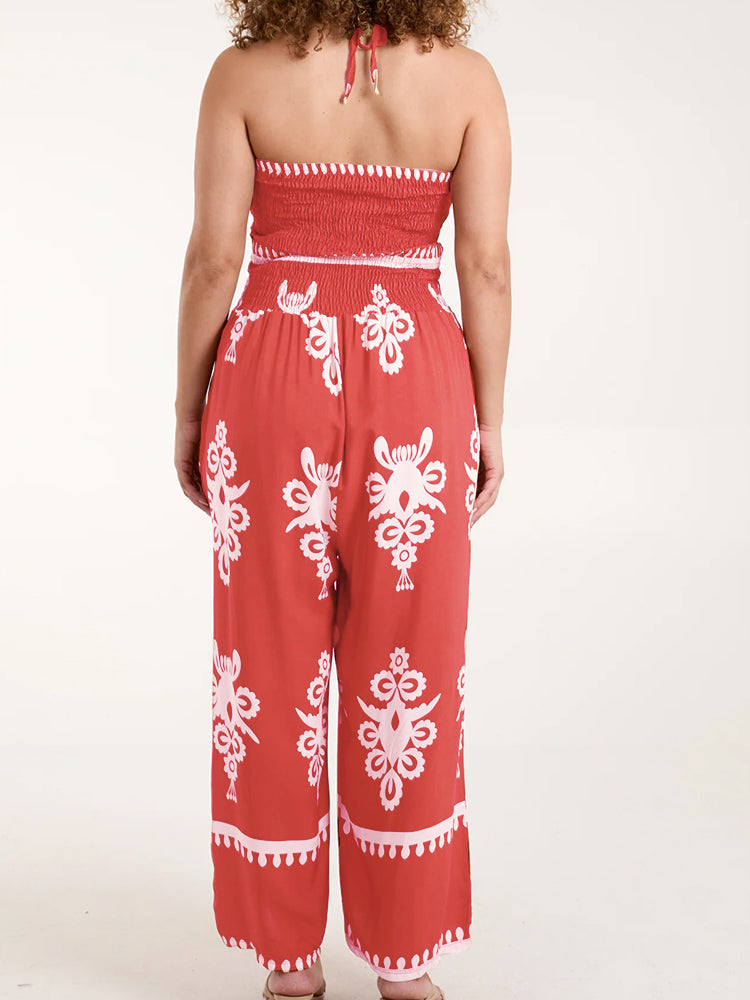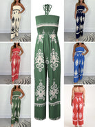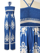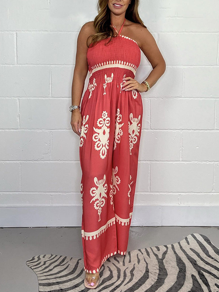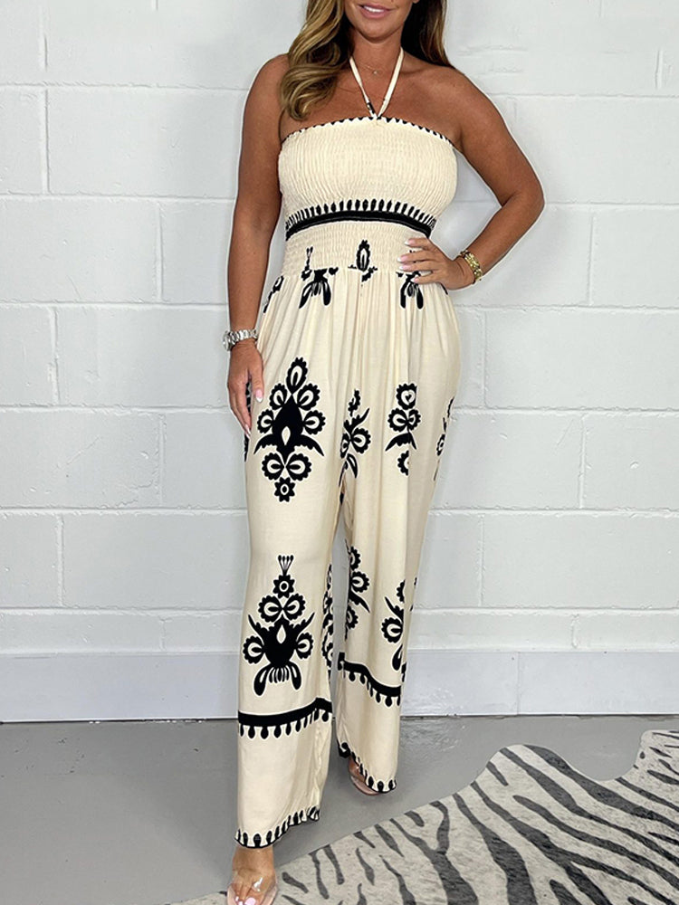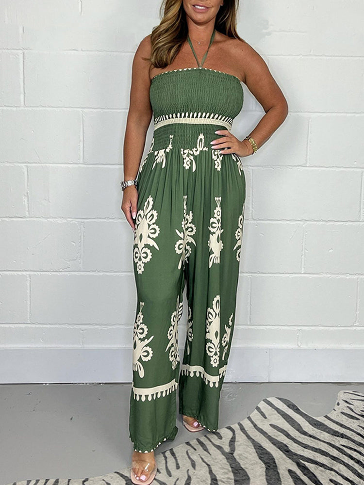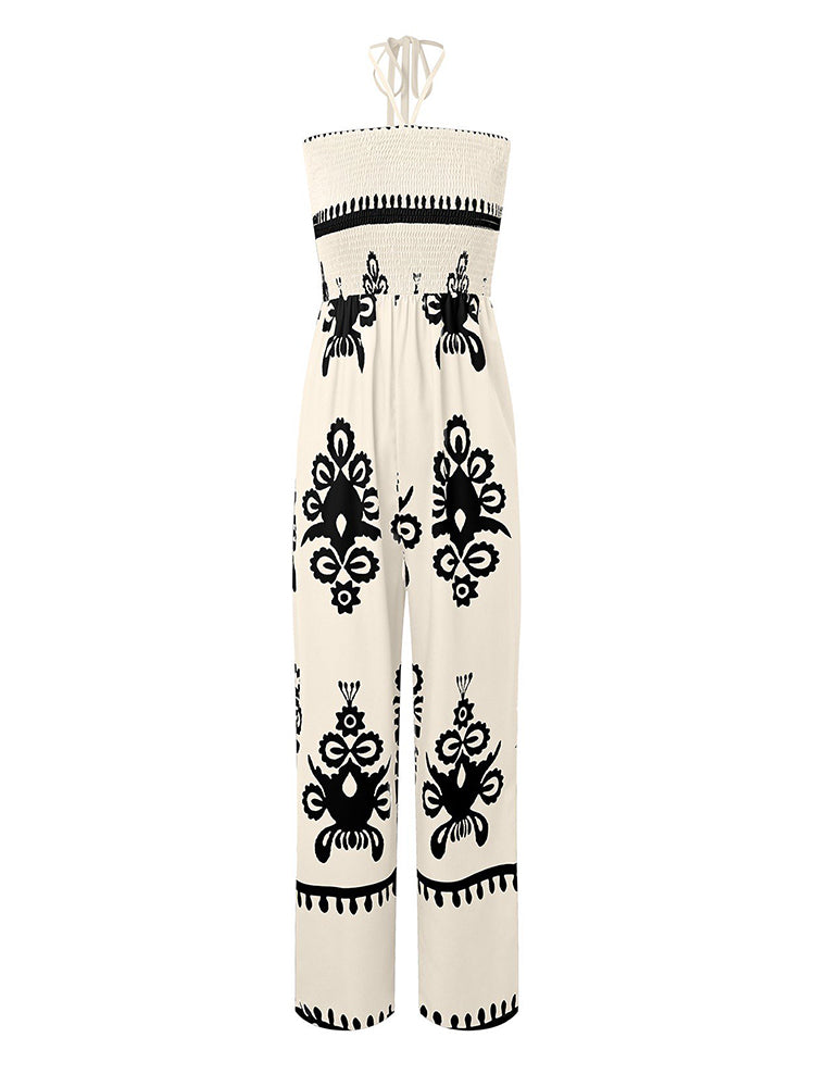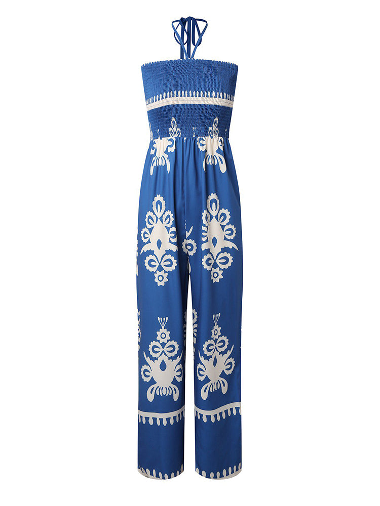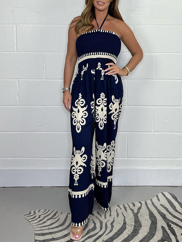 - 1 x Women's Print Smocked Halter Neck Tube Top Suspender Wide Leg Jumpsuit