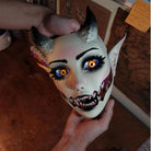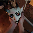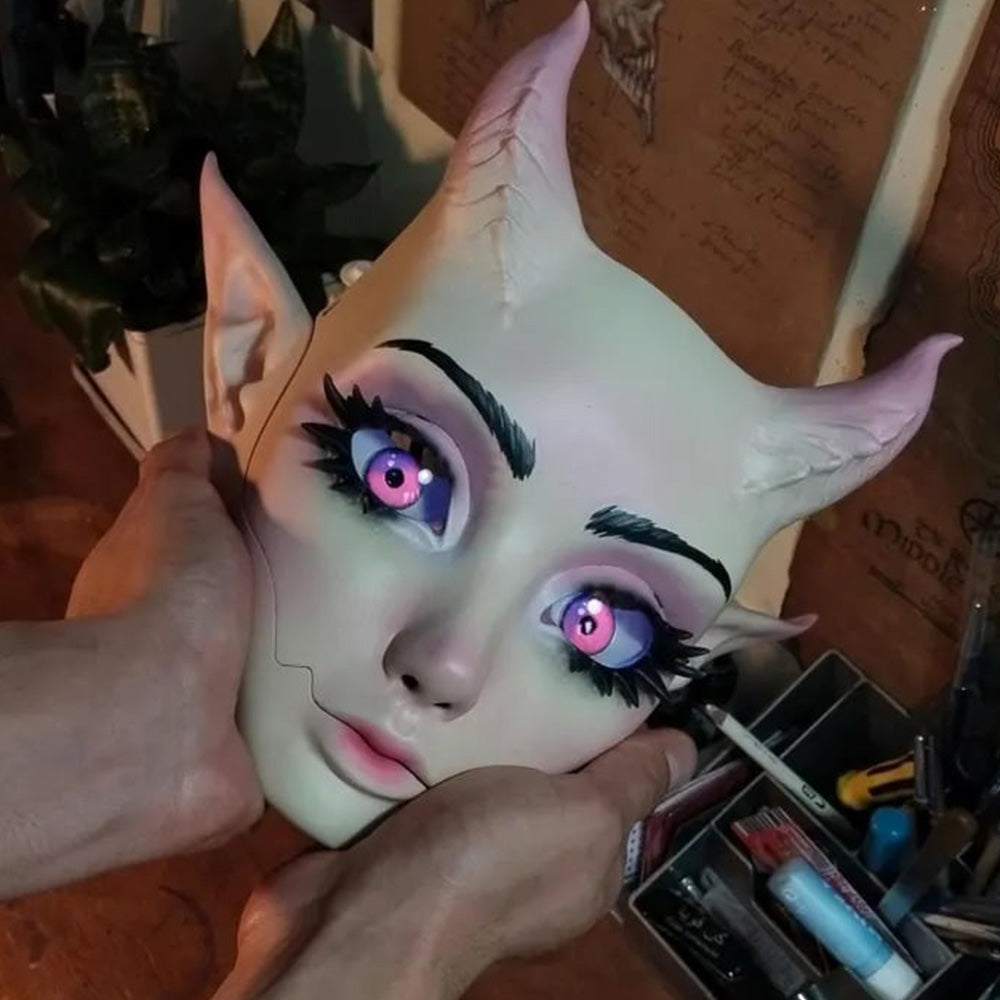 - Detail Design: The exaggerated pointed ears and upward-curving black horns enhance the demonic characteristics. The eyelashes around the eyes are finely crafted, with the yellow irises featuring highlights. The matte texture of the cheeks contrasts with the glossy eyes, enriching the visual layers.