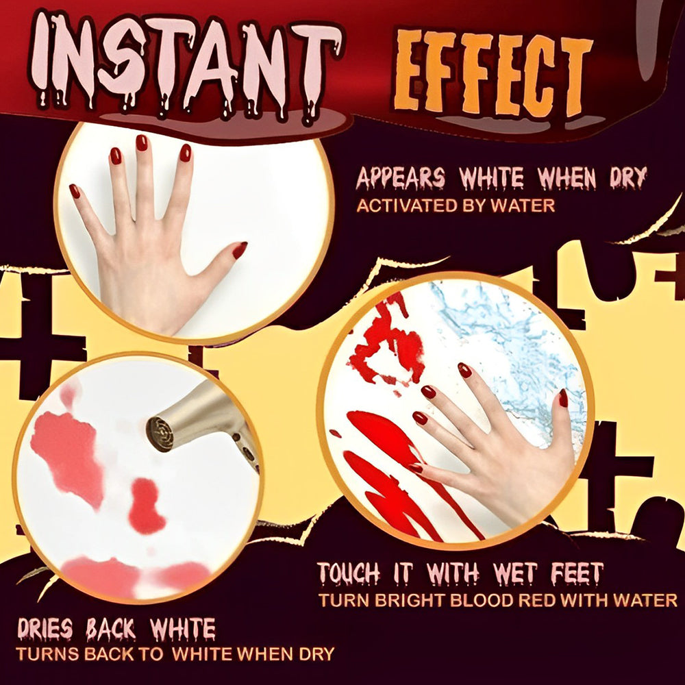 🎃When you splash water on it, it looks just like real blood, super creepy. It dries relatively quickly and goes back to its original color.