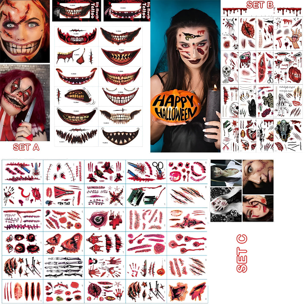 - 1/3 Set x Halloween Prank Makeup Temporary Tattoo