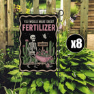 Bring your garden to life... or afterlife! This cheeky yard flag features a grinning skeleton pushing a flower-filled wheelbarrow among cacti, with the hilarious message: “You Would Make Great Fertilizer.” A perfect blend of dark humor, autumn vibes, and plant‑parent pride!