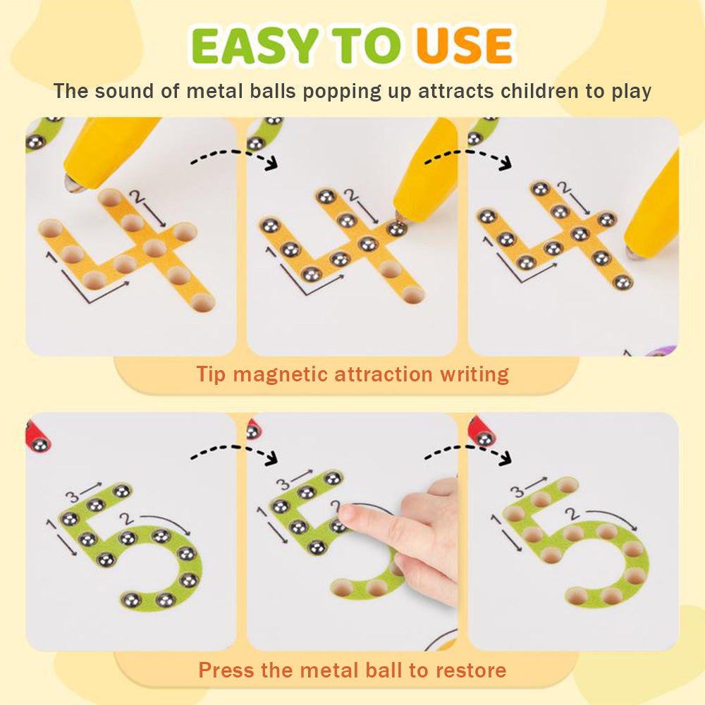 Great Tool to Teach Writing: users using the stylus pen help them stay on the stroke - and they love to hear and see the metal beads pop up as they go. Then they can use their finger to erase each letter. With the sequence stroke and path direction instruction guide next to each alphabet character.