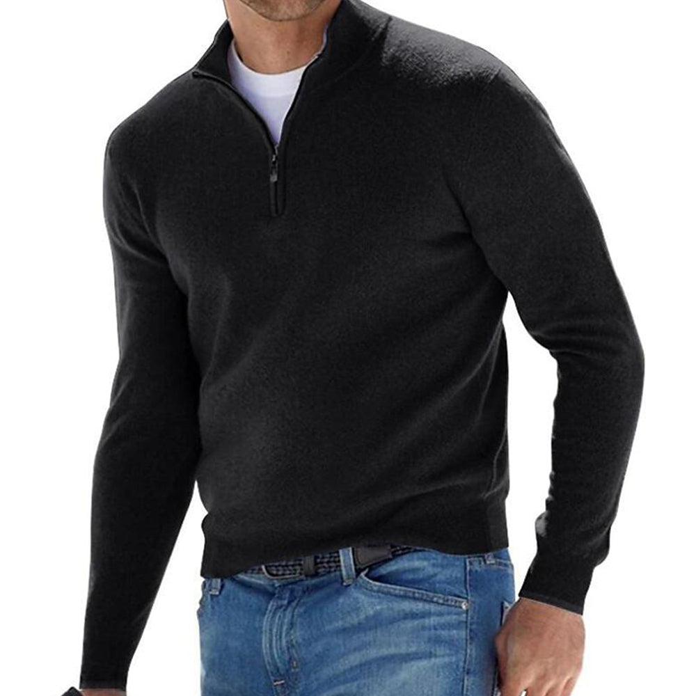 Plush Quarter Zip Up Sweaters for Men Casual Long Sleeve Sweatshirts
