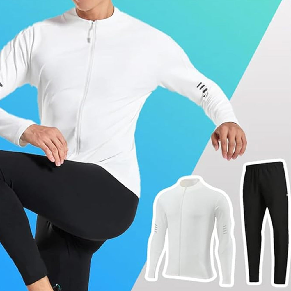 - Premium Material: these sweat suits boast exceptional moisture-wicking properties, ensuring you remain comfortably dry during intense workouts. Moreover, they're designed to resist fading and pilling, maintaining their high quality wear after wear.