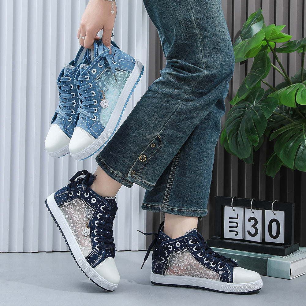 🔥2025 New🔥Lace Mesh Breathable High Top Women's Canvas Shoes