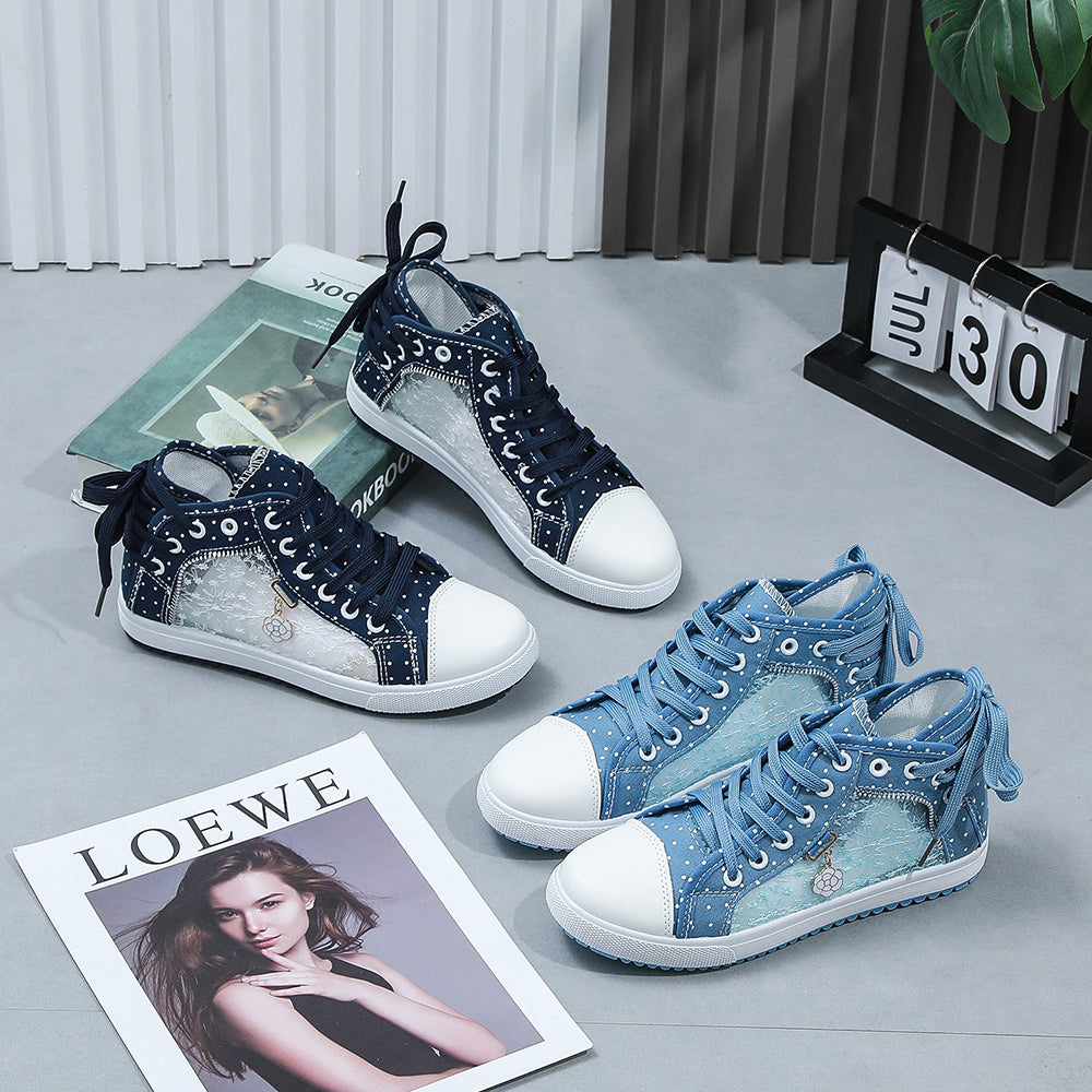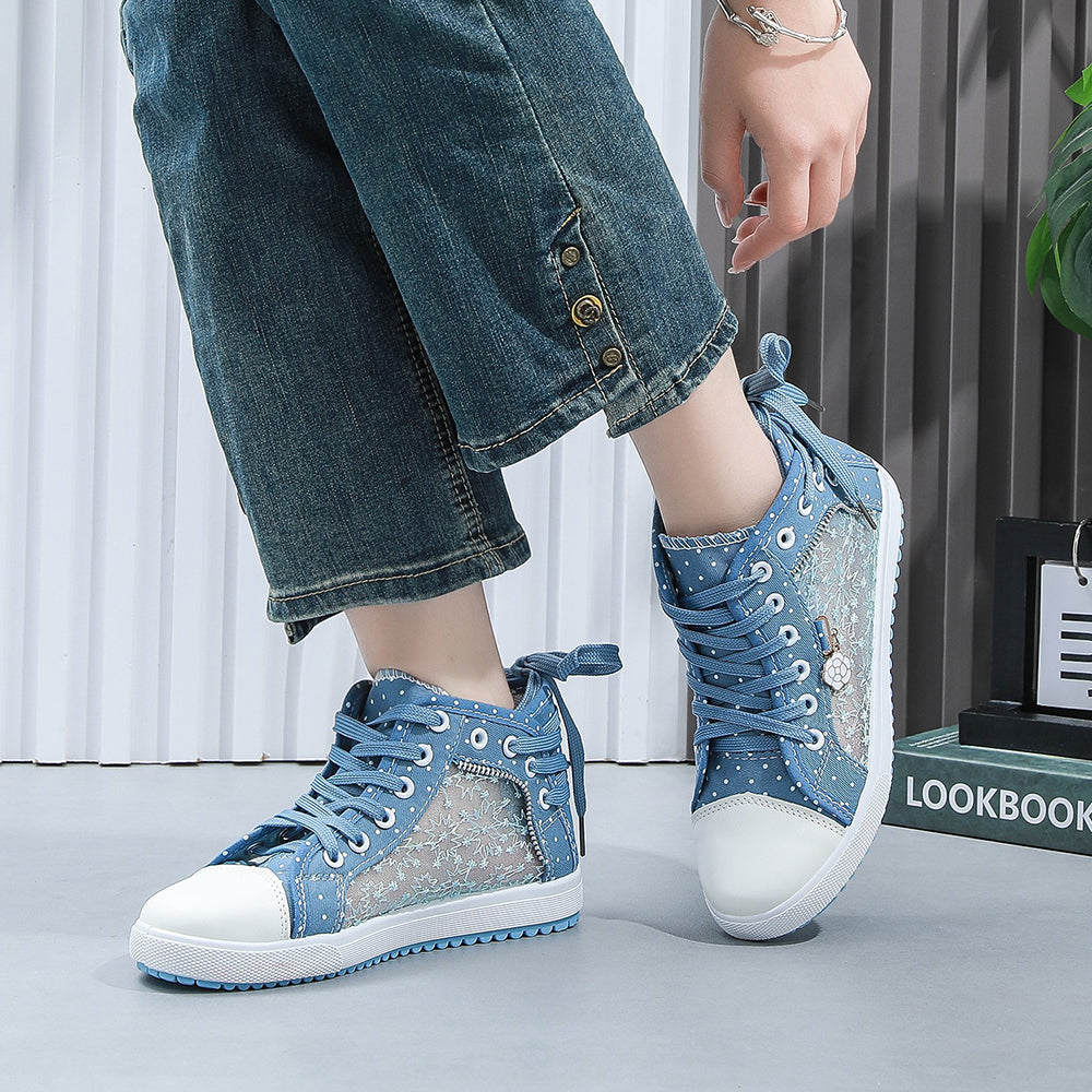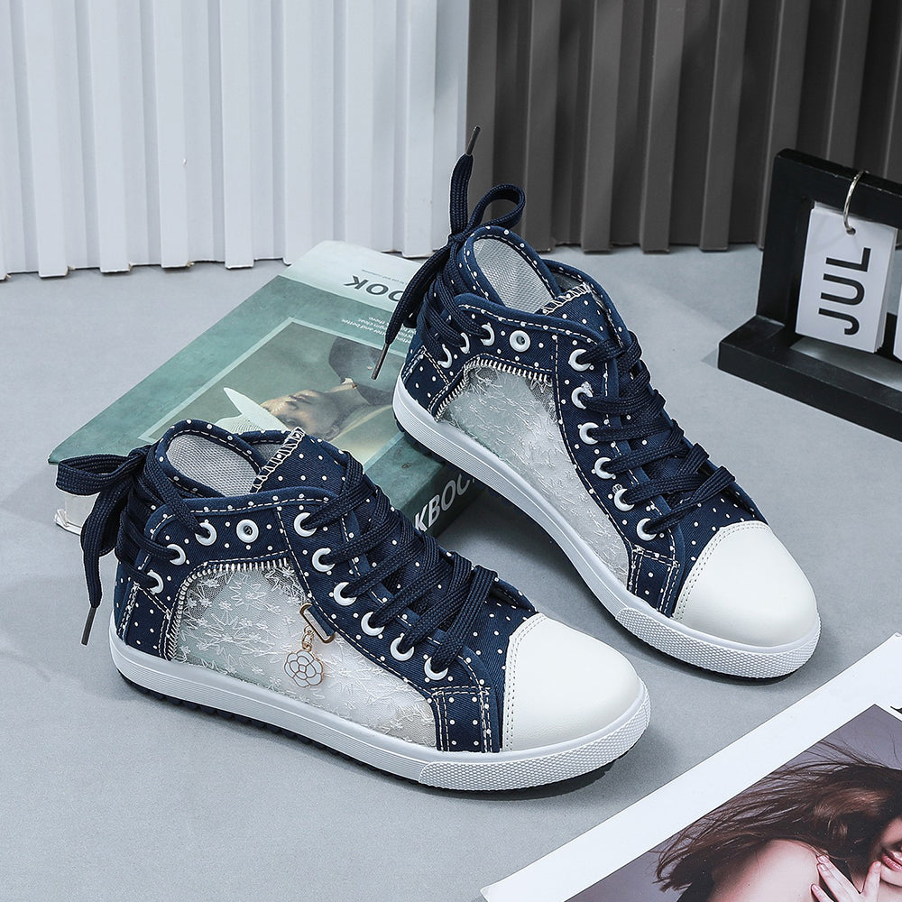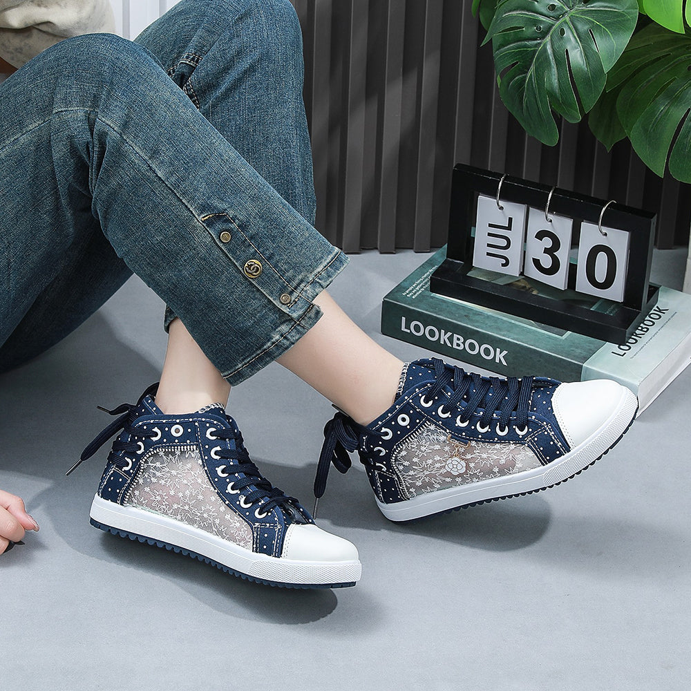 • 1 Pair x 2024 New Lace Mesh Breathable High Top Women's Canvas Shoes
