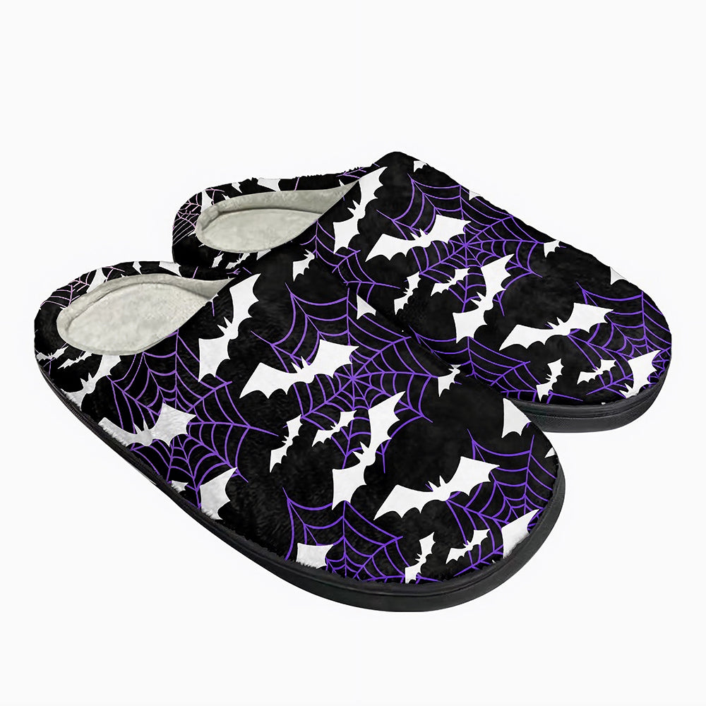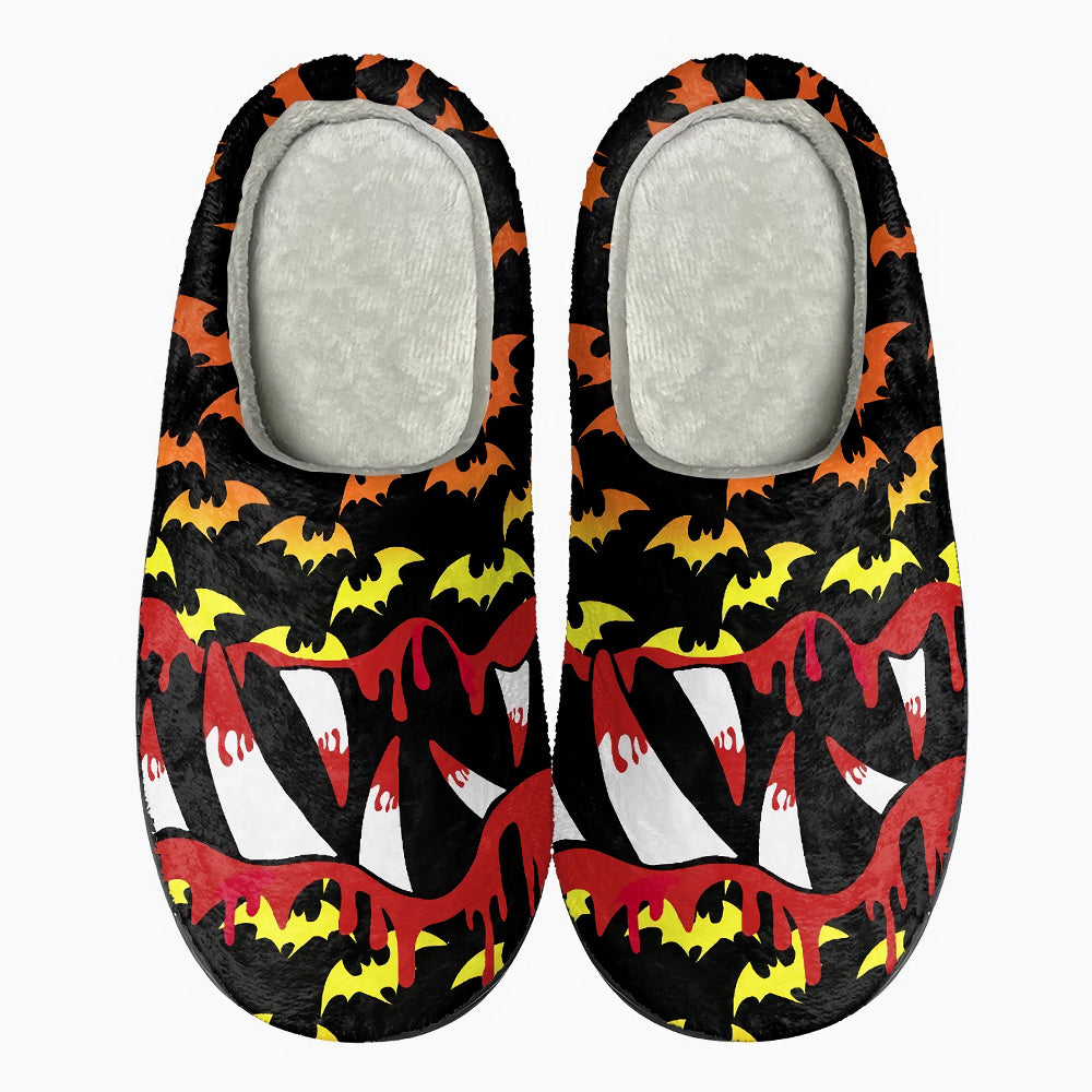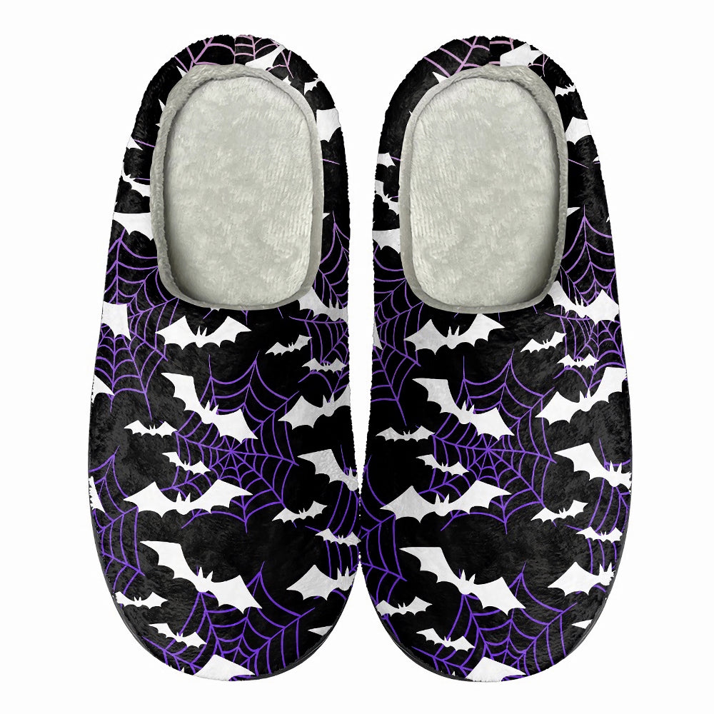 • HORRIBLE AND INTERESTING DESIGN: The design of Halloween cotton slippers is full of horror elements, but also interesting. The bat shape, with wings spread out, seems to take you flying in the sky on Halloween night; the terrifying blood-sucking fangs shape gives people a mysterious and thrilling feeling.