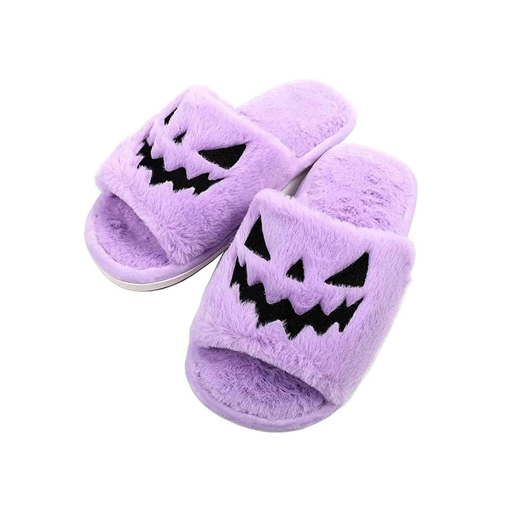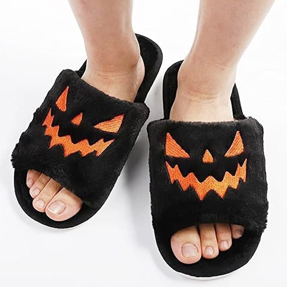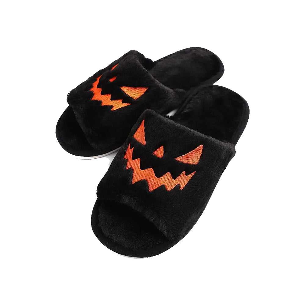 • 💕【Soft Fabric】These Fuzzy halloween slippers are made of high-quality plush material, which is very soft and comfortable to touch.The open-toed design is breathable and will not produce odor.