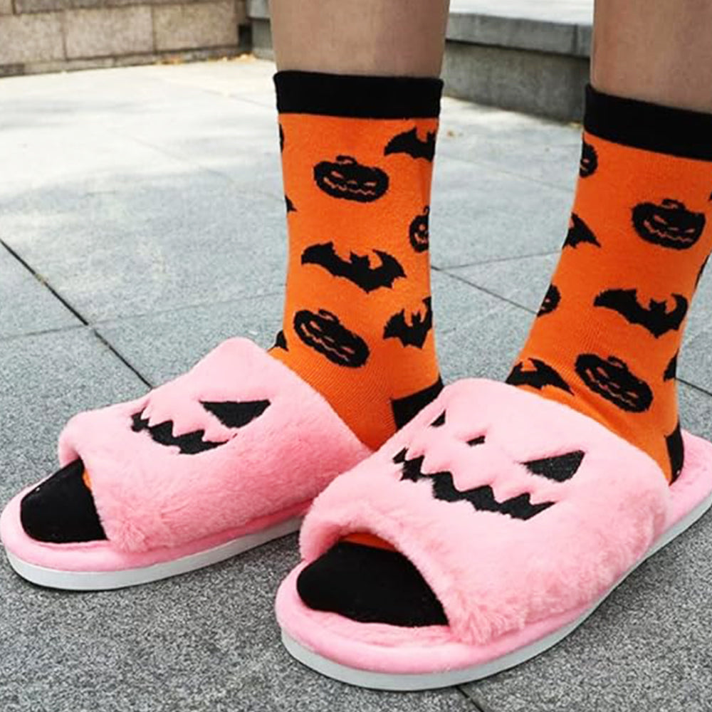 🎃This Halloween theme Halloween Pumpkin Slippers is a pair of comfortable open-toed slippers that provide you with double warmth and set off a festive atmosphere.