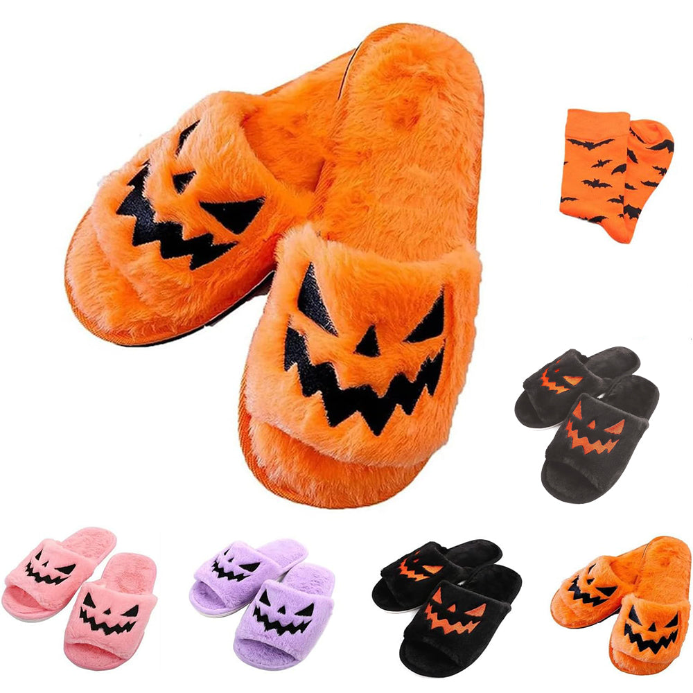 Halloween🎃Pumpkin Ghost Fuzzy Open Toe Slippers for Women