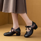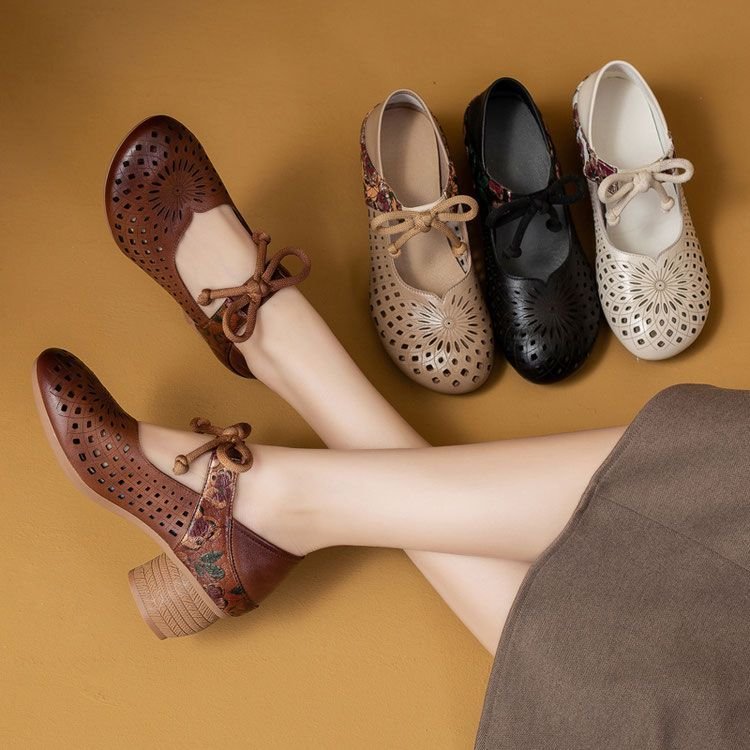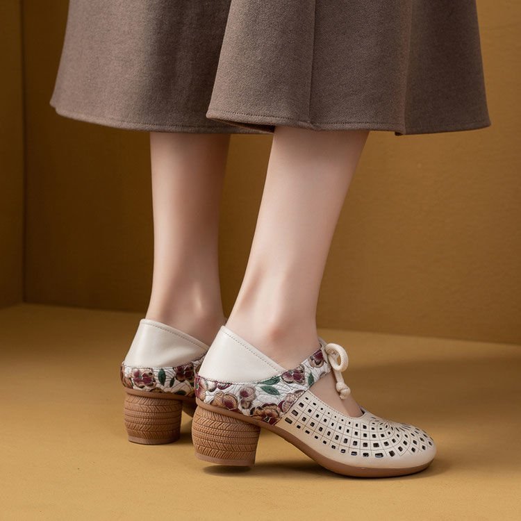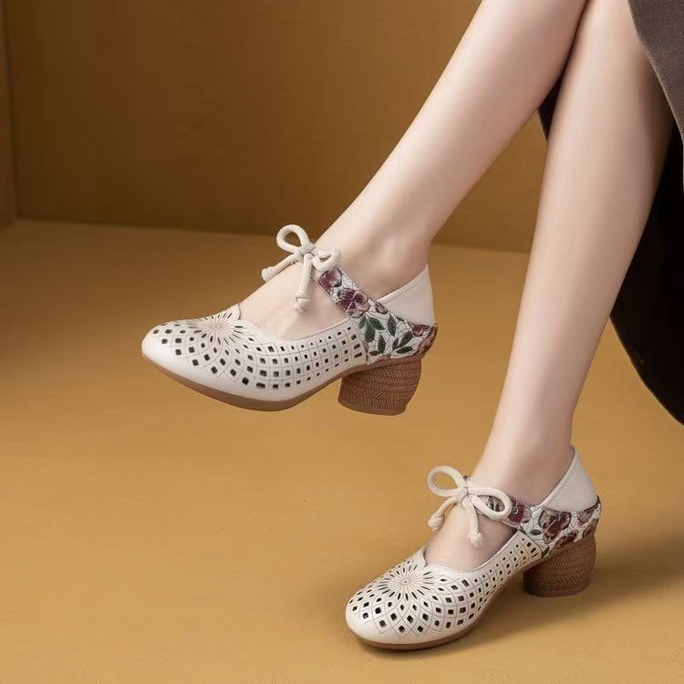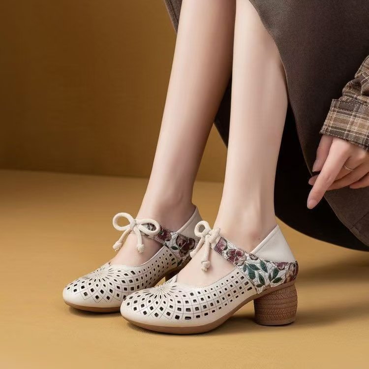 Retro High-Heeled Women's Ethnic Style Non-Slip Mom Shoes