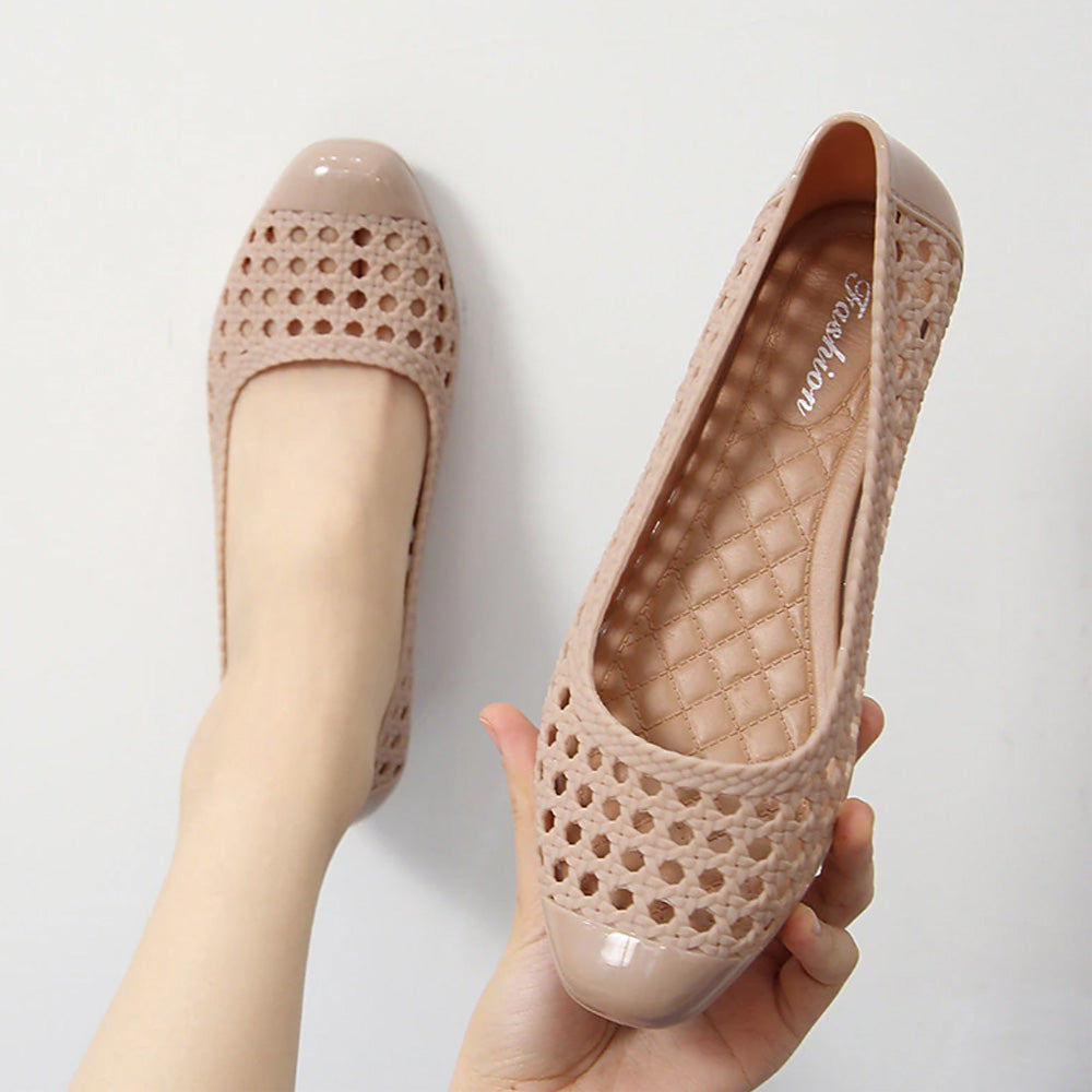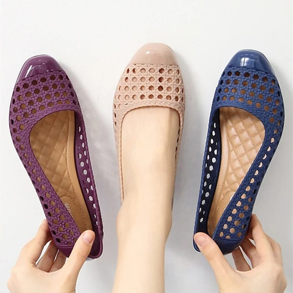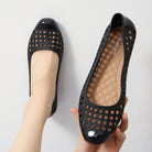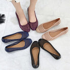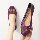 Available in sophisticated solid colors including black, blue, apricot, and purple, these flats feature perforated uppers for excellent ventilation. The flexible loafer closure ensures ease of wear, combining elegance with practicality.