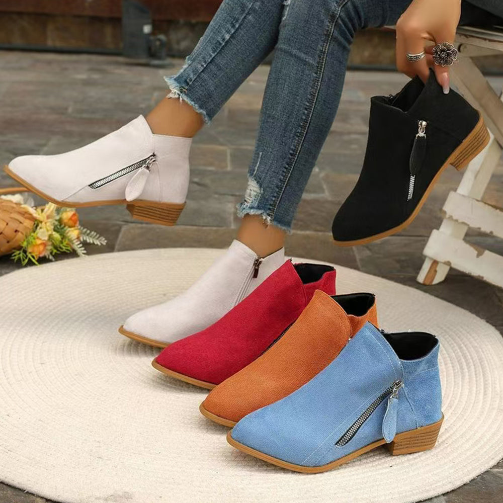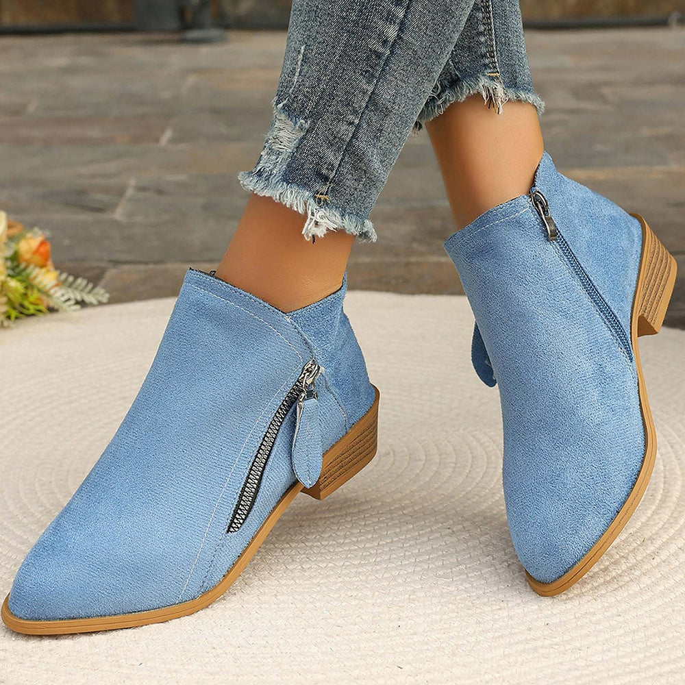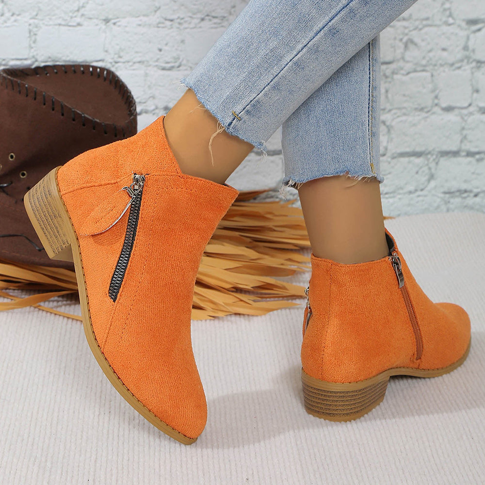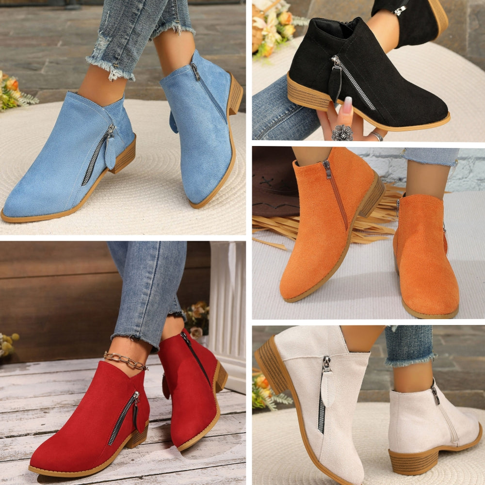 - 1 Pair x Women's Side Zipper Pointed Suede Ankle Boots