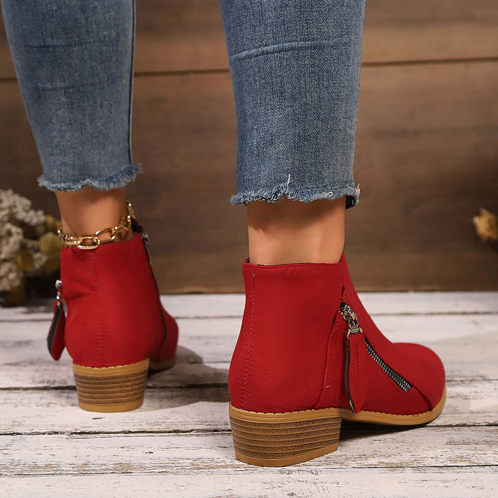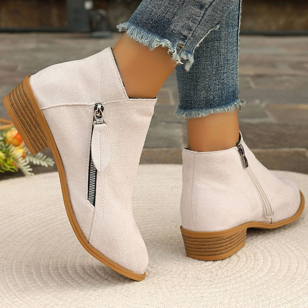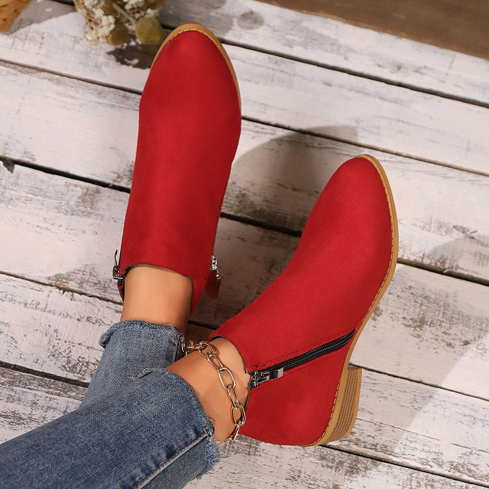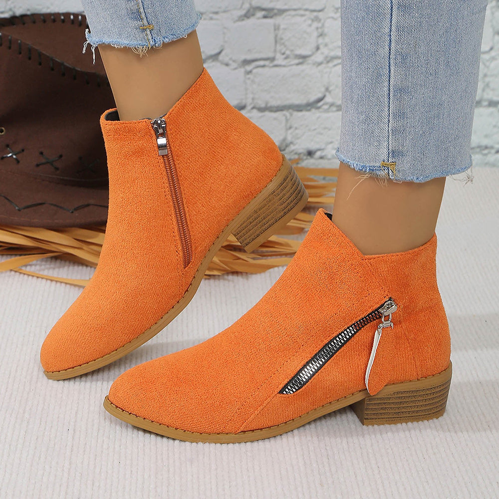 - 1 Pair x Women's Side Zipper Pointed Suede Ankle Boots