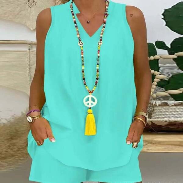 • Sleeveless Casual Suit: Enjoy the comfort of a coordinated outfit with this pant suit.