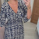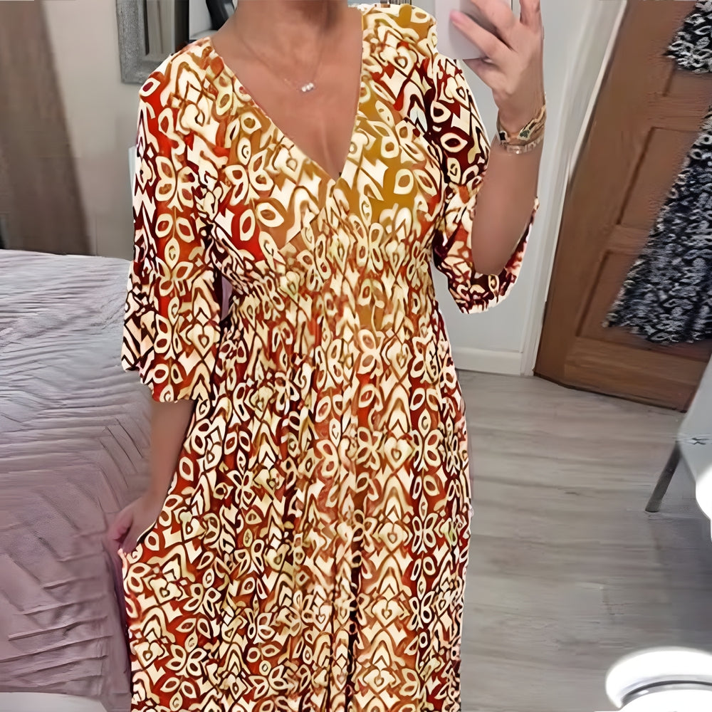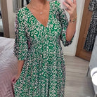 - 1 x Casual Print V-Neck Waist Wrap Long Dress