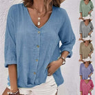 ❤ Design Highlights: V Neck, Button, Drop Shoulder, Two Ways to Wear, Oversized Style, Loose Fitting, Solid Color, Casual Summer Linen Shirts. Makes You More Attractive, Charming, Fashion and Elegant.