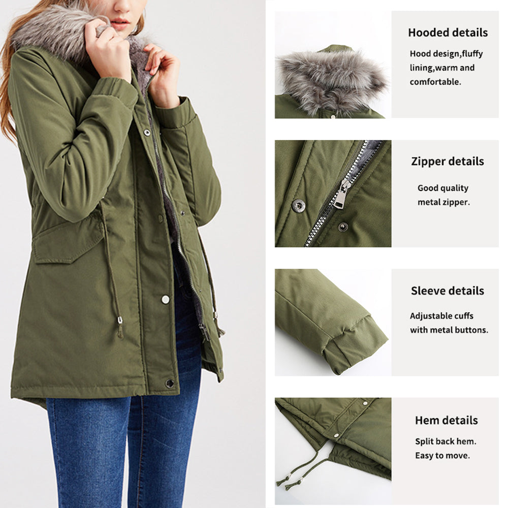 - 1 x Women's Parka Jacket Hooded Stylish Winter Coats with Faux Fur