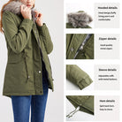 Women's Parka Jacket Hooded Stylish Winter Coats with Faux Fur