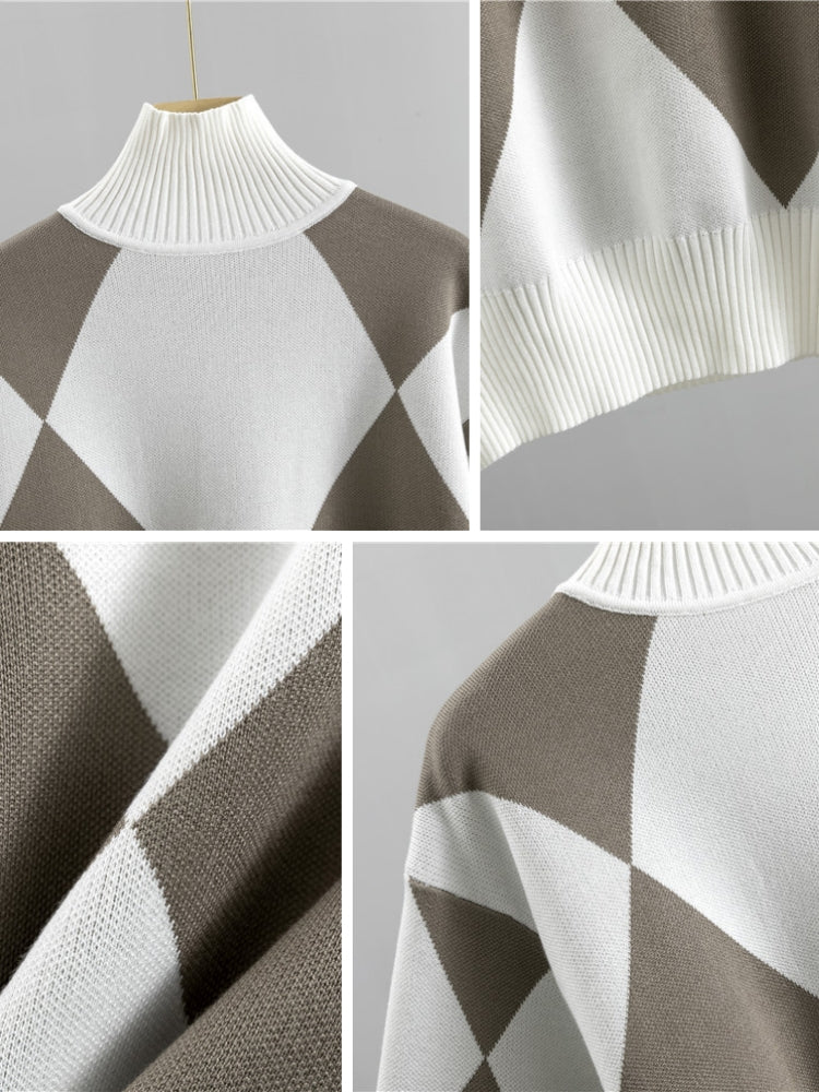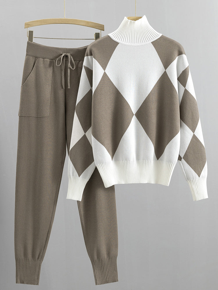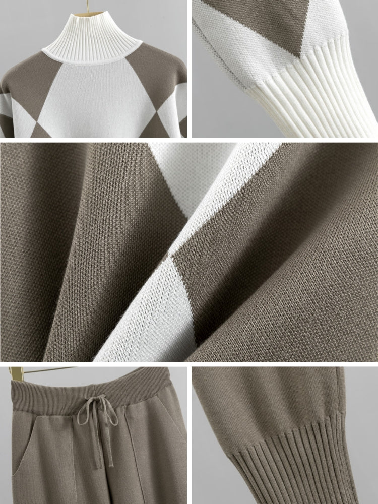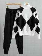 Women's Plaid Long Sleeve Knitted Sweater and Ankle Length Harem Pant Suits