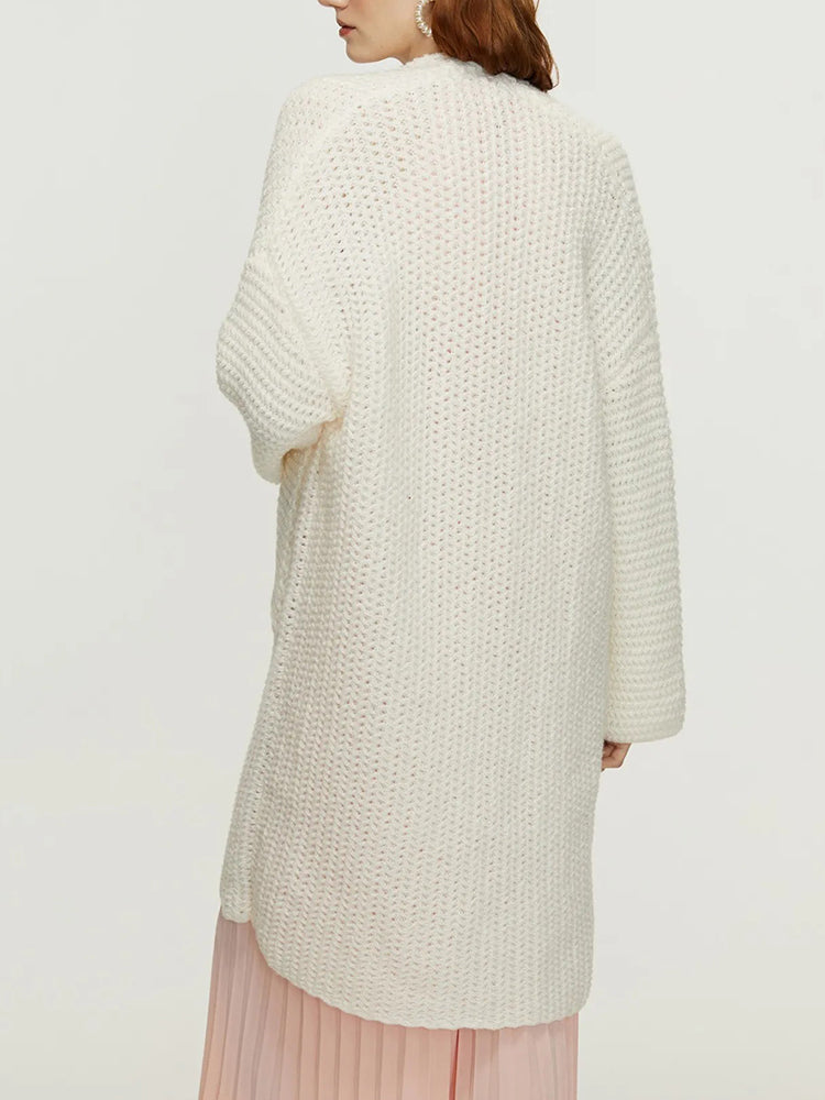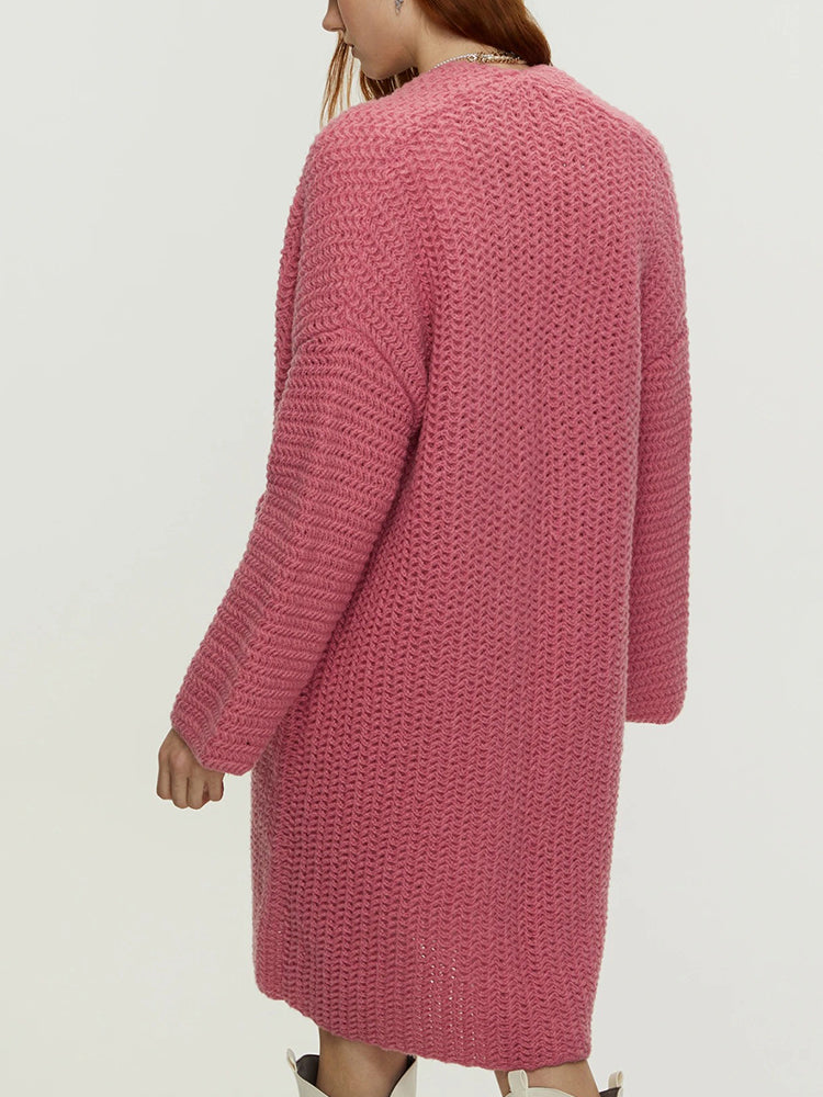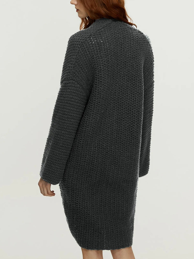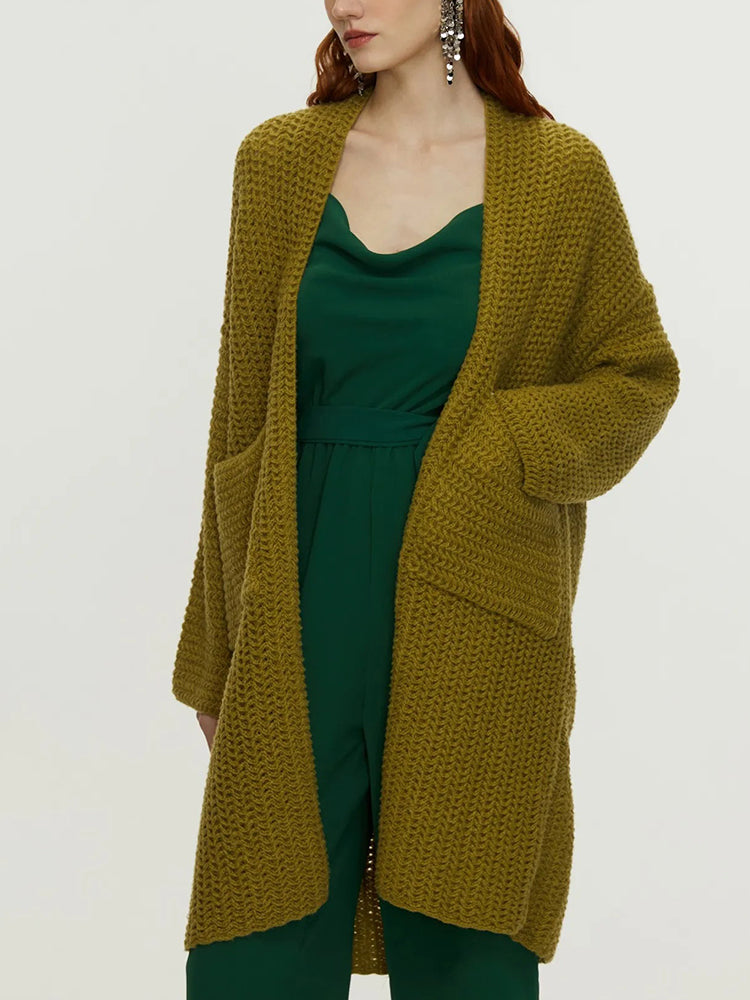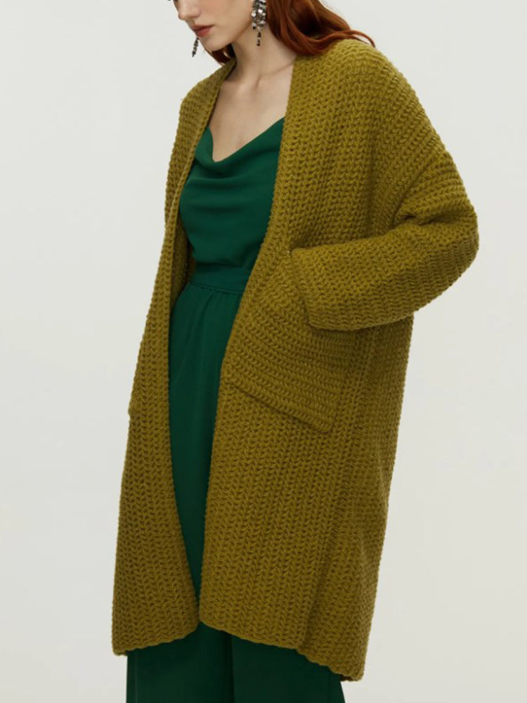 Women's Spring Autumn Leisure Solid Color Twist Medium Long Knitted Cardigan Coat
