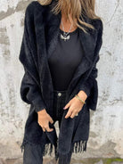 Women's Warm Knit Plush Tassel Trim Relaxed Shawl Cardigan