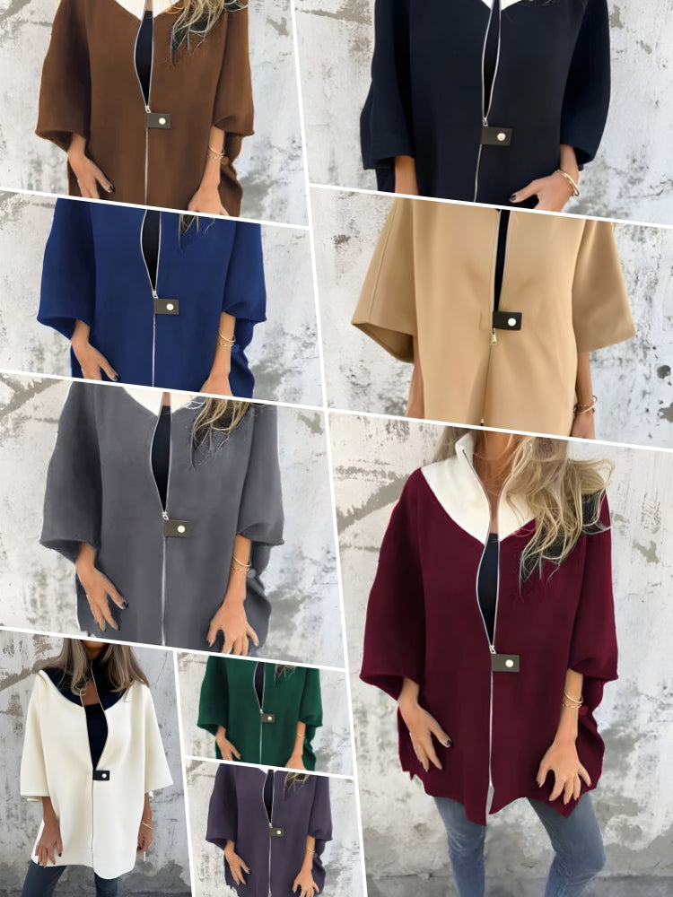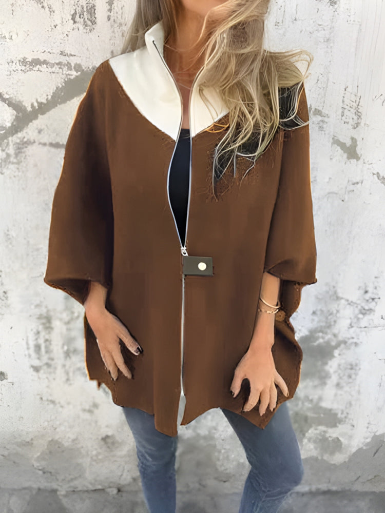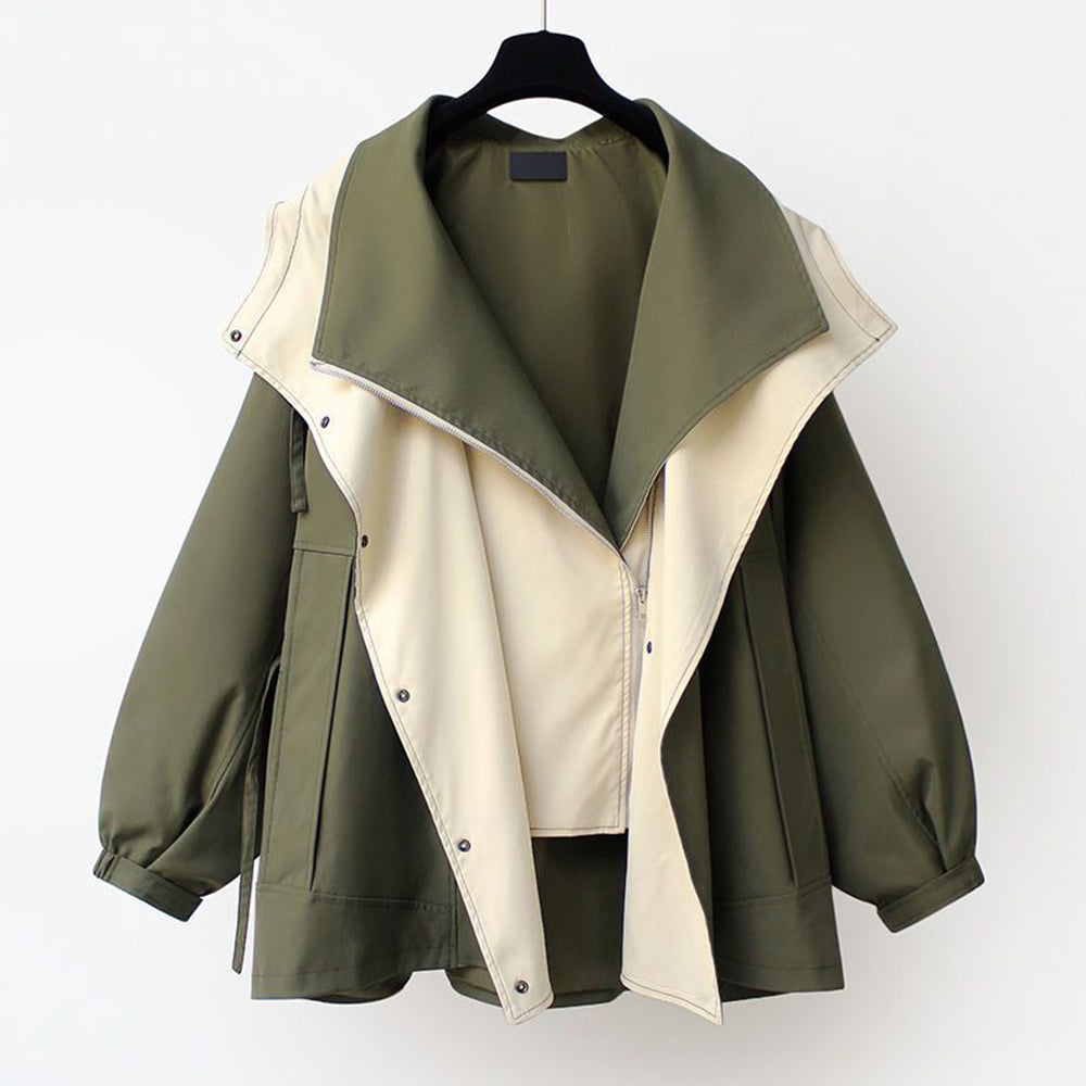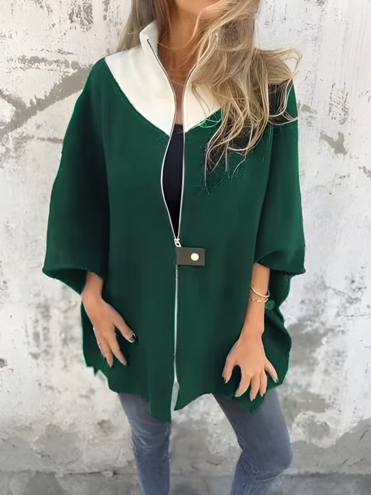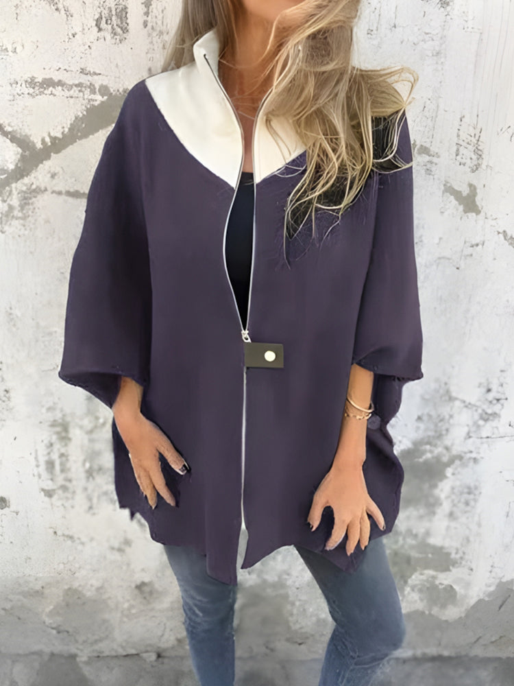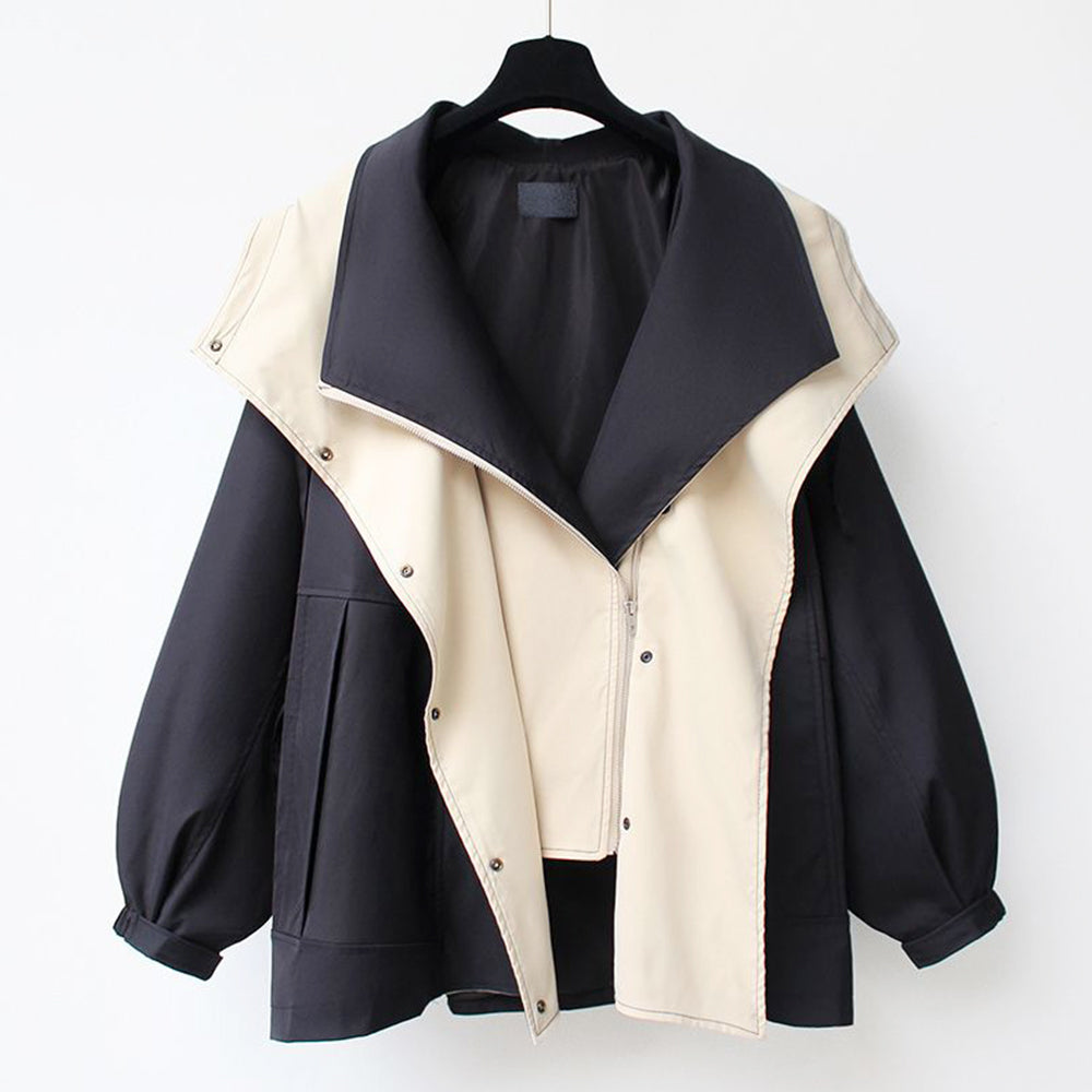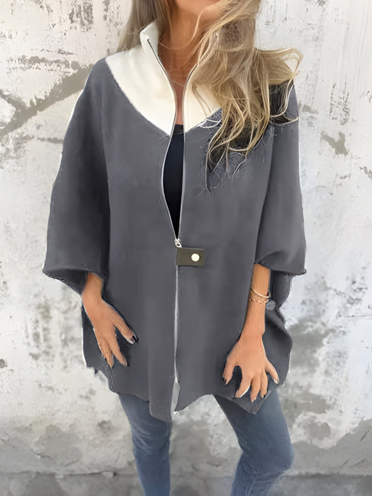 Women's Loose Stand Collar Zipper Fashion Jacket Coat
